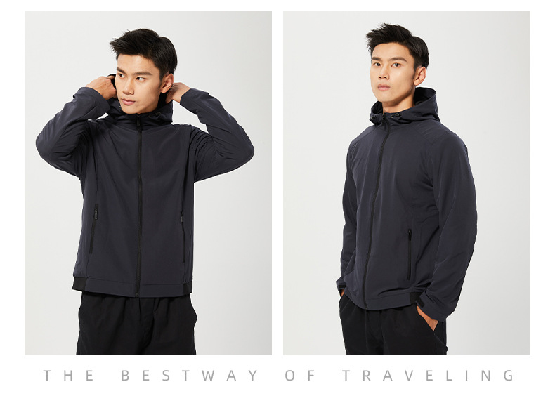 새로운 도매 야외 탄성 남성용 윈드 브레이커 방수 통기성 얇은 단일 레이어 재킷 등산 재킷 캠핑스토어 가기