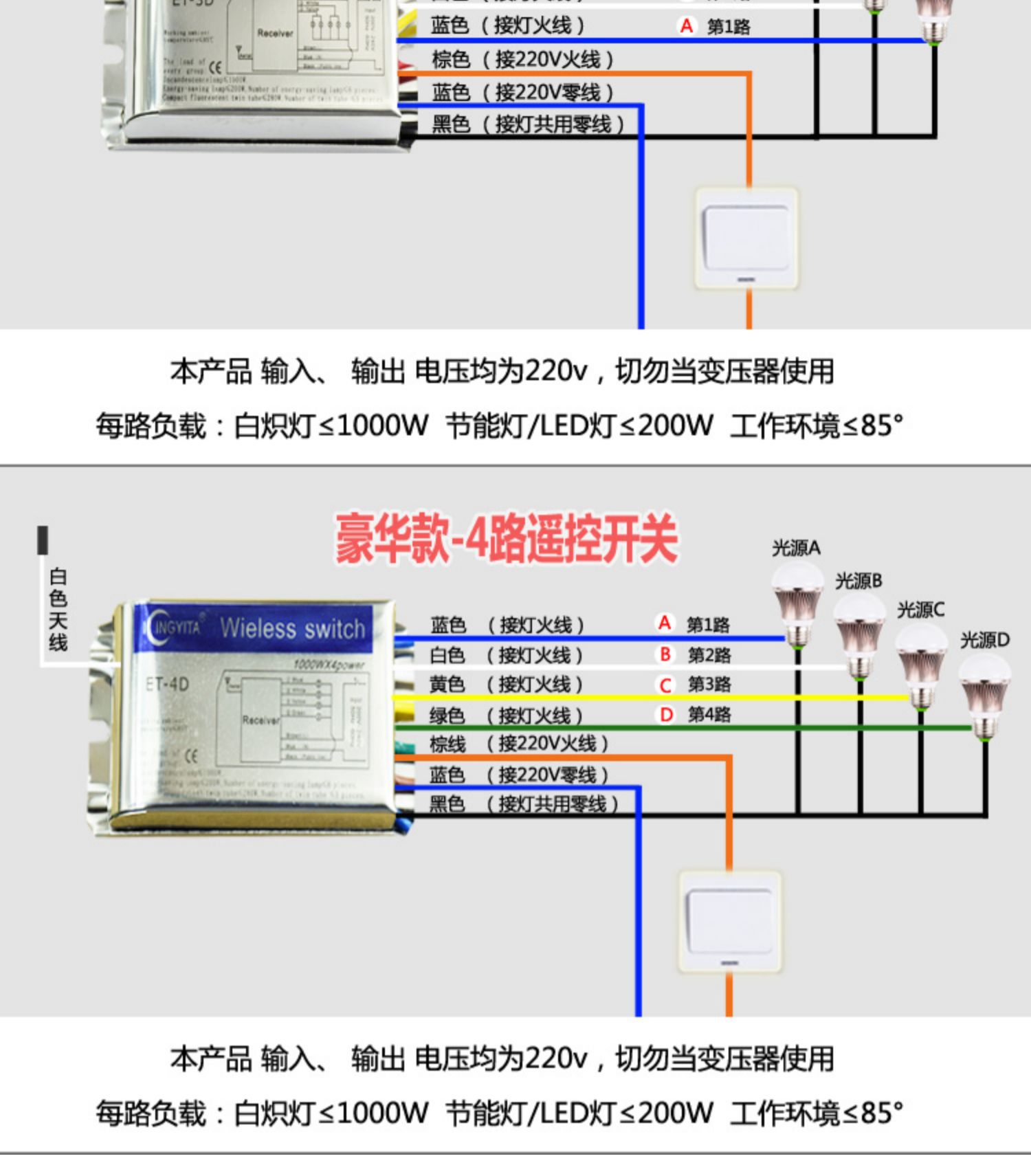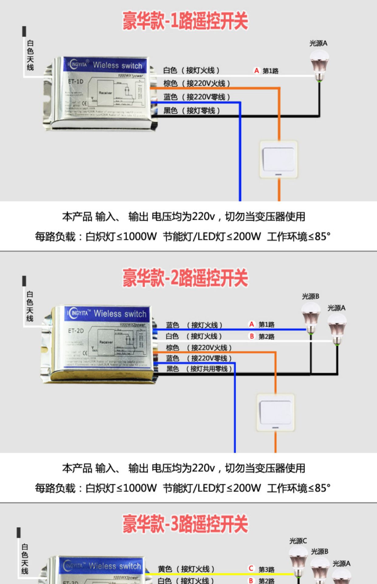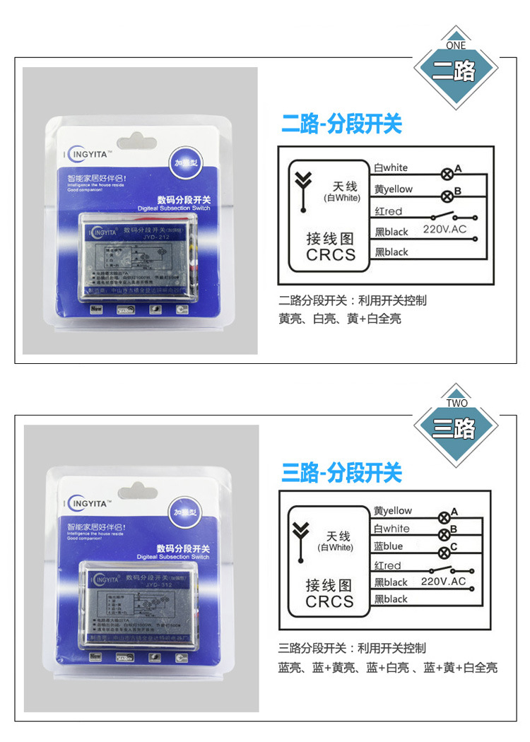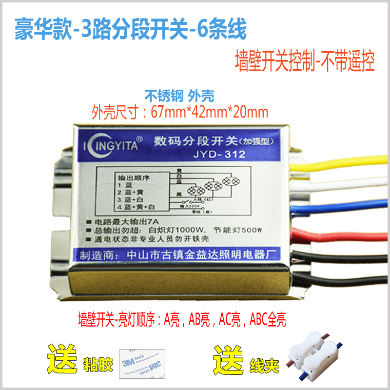 디지털 섹션 스위치 양방향 3 섹션 향상된 led 천장 램프 제어 l-샹들리에 3 방향 서브 컨트롤러 램프 및 등불