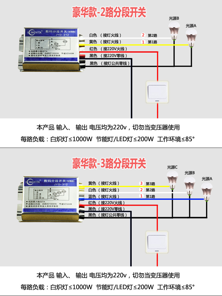 디지털 섹션 스위치 양방향 3 섹션 향상된 led 천장 램프 제어 l-샹들리에 3 방향 서브 컨트롤러 램프 및 등불스토어 가기