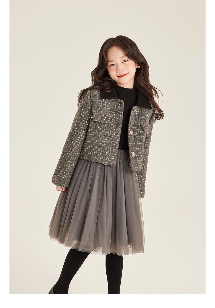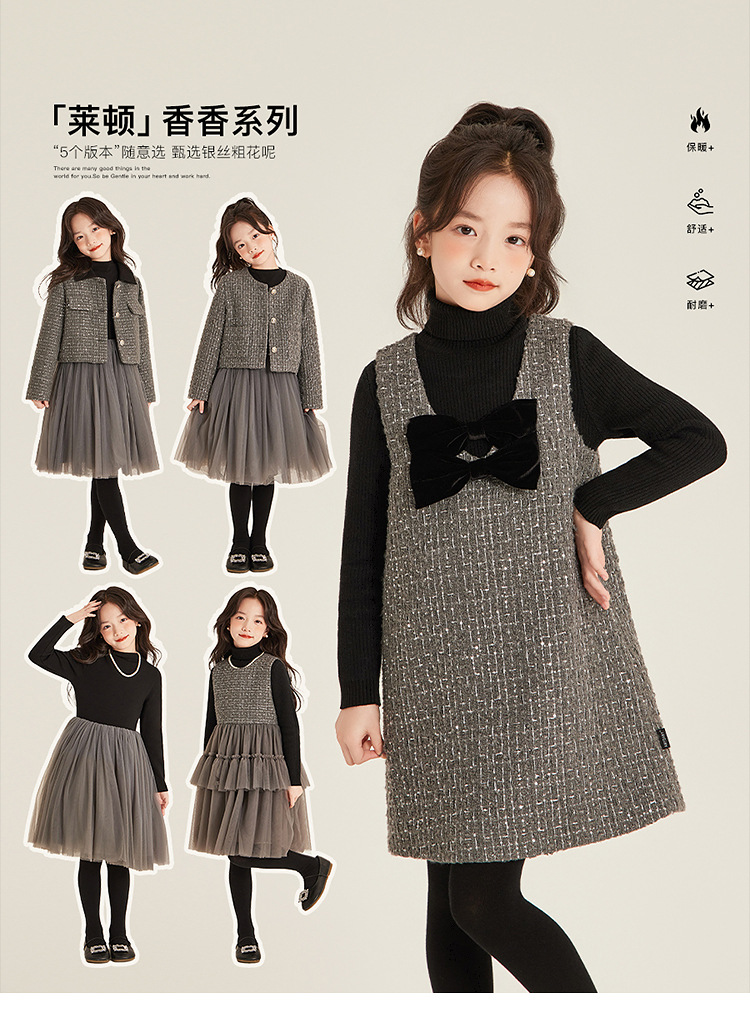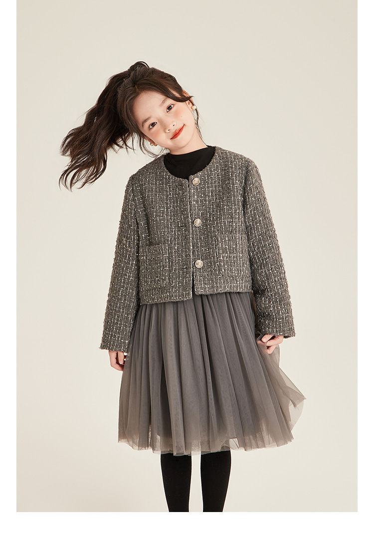 Amybaby Girls 2024 겨울 세트 새로운 스타일 샤넬 스타일 메쉬 투투 원피스 베플로이드 원피스 모직 코트