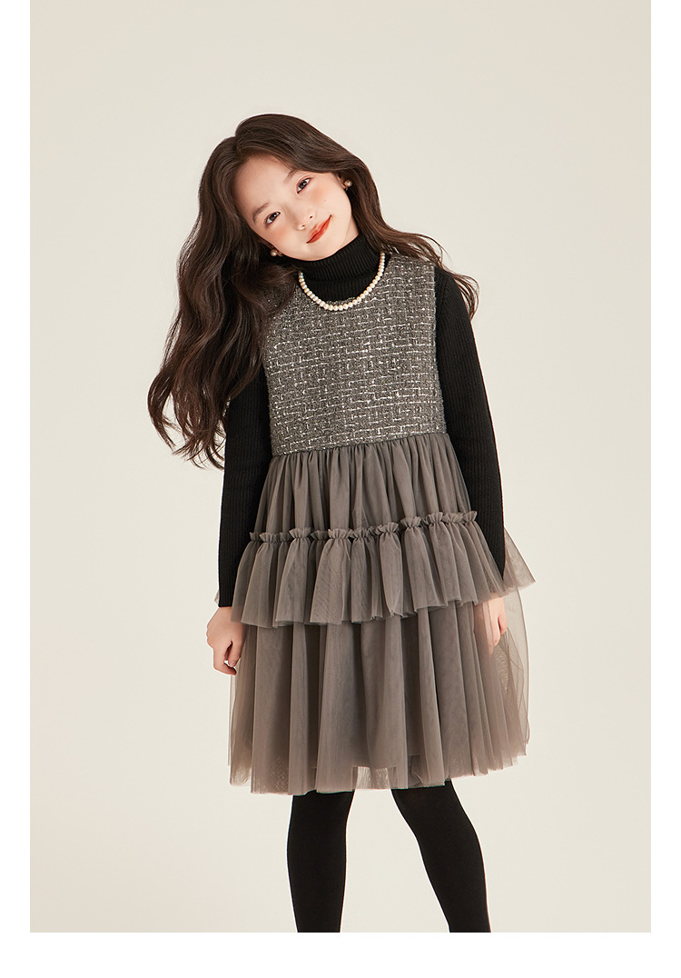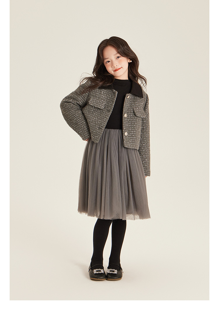 Amybaby Girls 2024 겨울 세트 새로운 스타일 샤넬 스타일 메쉬 투투 원피스 베플로이드 원피스 모직 코트스토어 가기