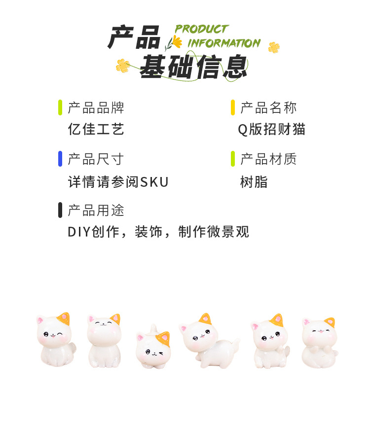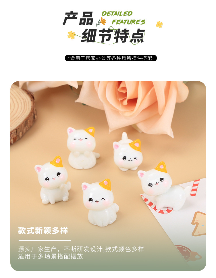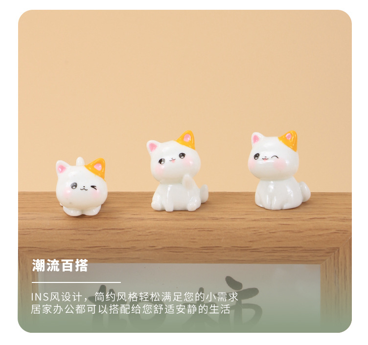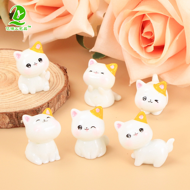 흰색 인형 귀여운 새끼 고양이 수지 장식품 사랑스러운 곡물 자동차 센터 콘솔 데스크탑 만화 마이크로 풍경 장식 도매스토어 가기