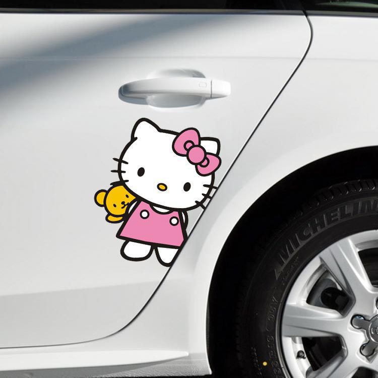 만화 KT 고양이 자동차 스티커 귀여운 장식 수정 자동차 스티커 창조적 인 전기 자동차 초보 커버 스크래치 스티커스토어 가기