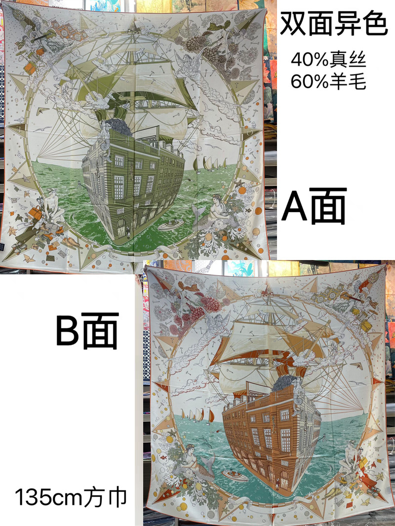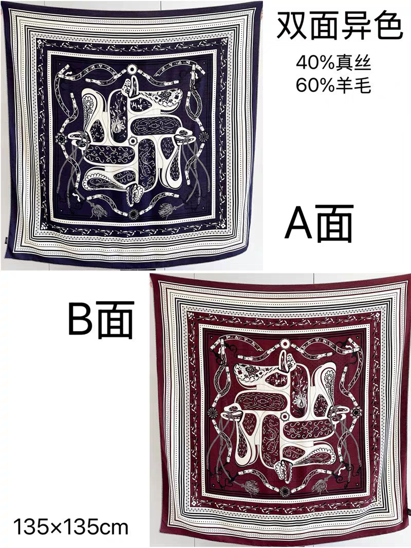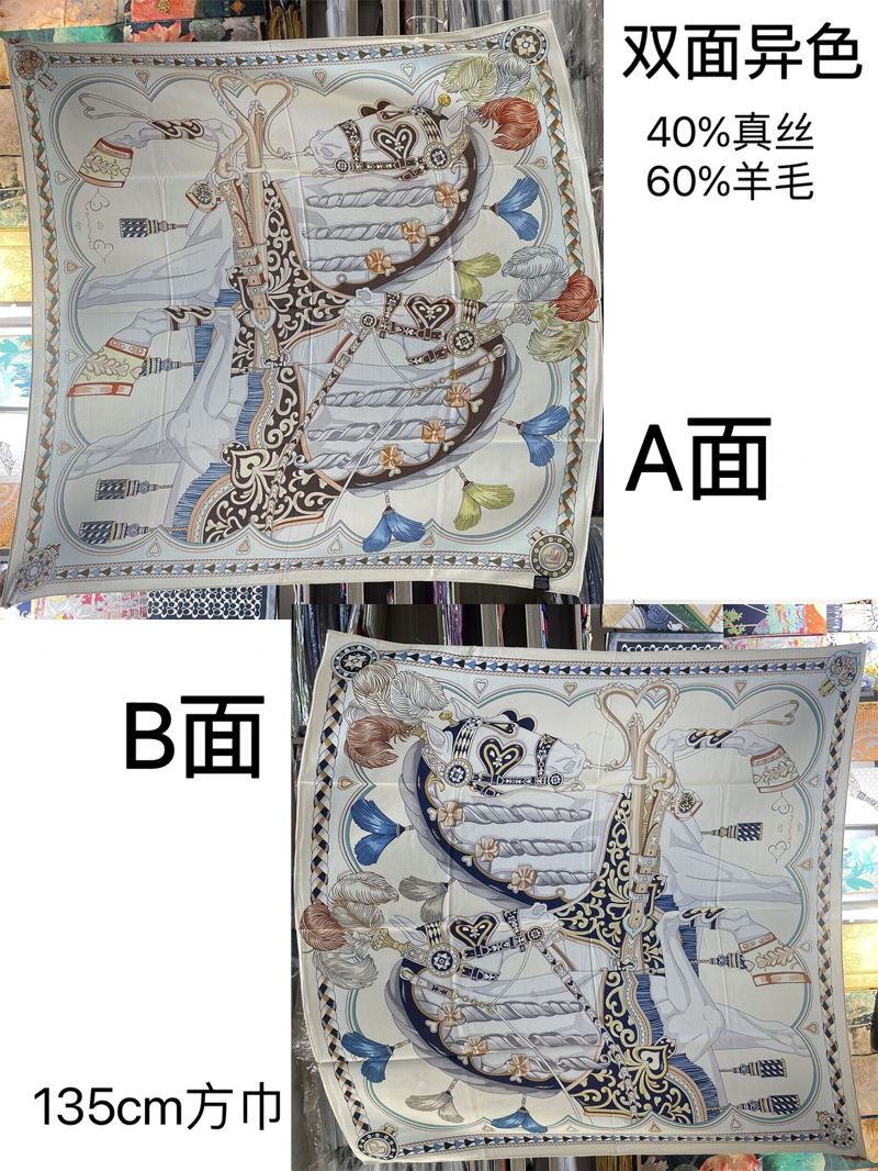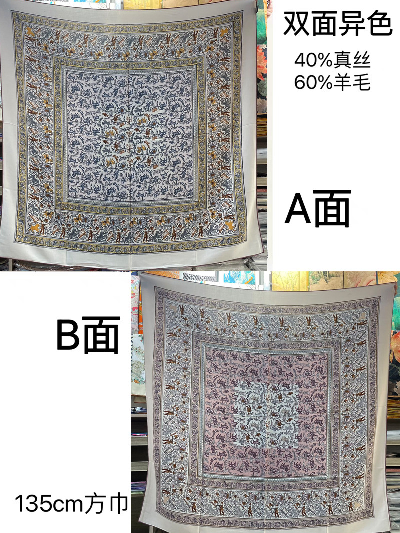 가벼운 럭셔리 따뜻한 새로운 올 매치 실크 울 140 대형 스퀘어 양면 이색 세련된 숄 실크 울 스카프스토어 가기
