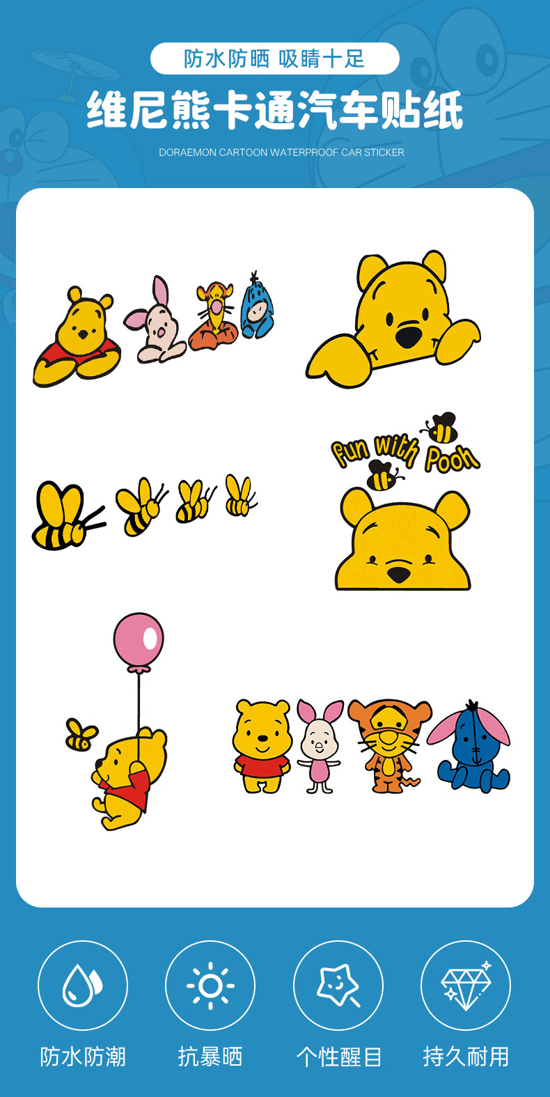 위니 푸치 귀여운 초보 상체 후면 개성 스티커 스크래치 백미러 장식 스티커