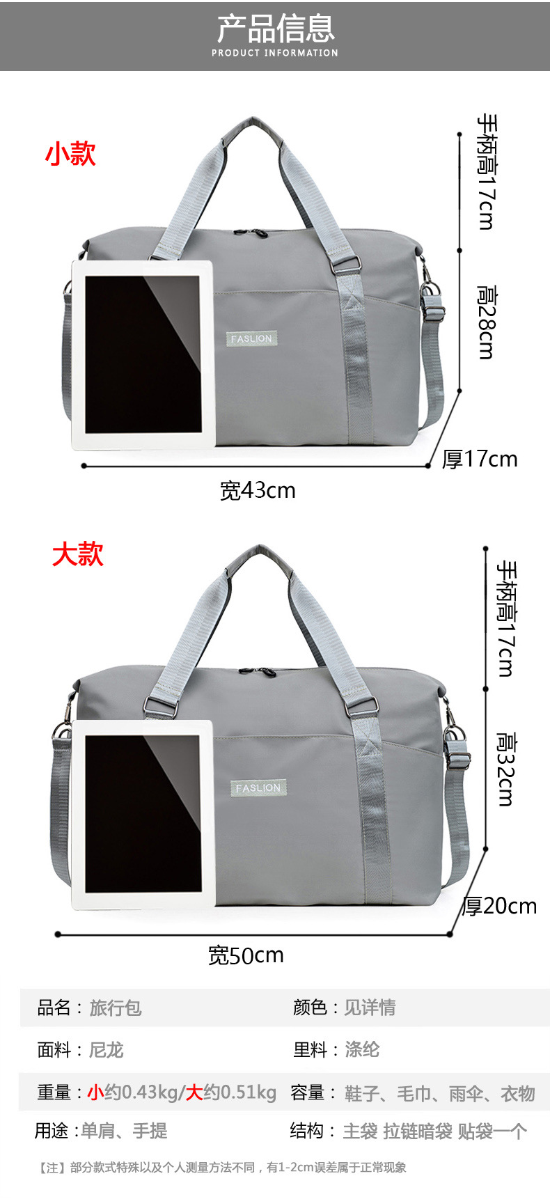 새로운 스타일 간단한 캐주얼 피트니스 여행 가방 휴대용 탑승 보관 가방 남성과 여성 여행 학생을위한 대용량 수하물 가방