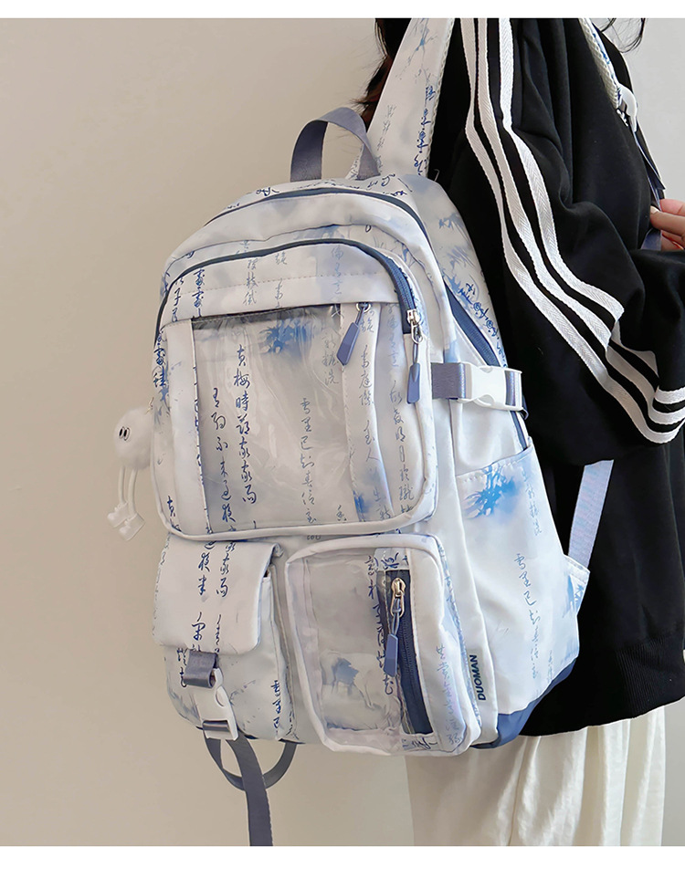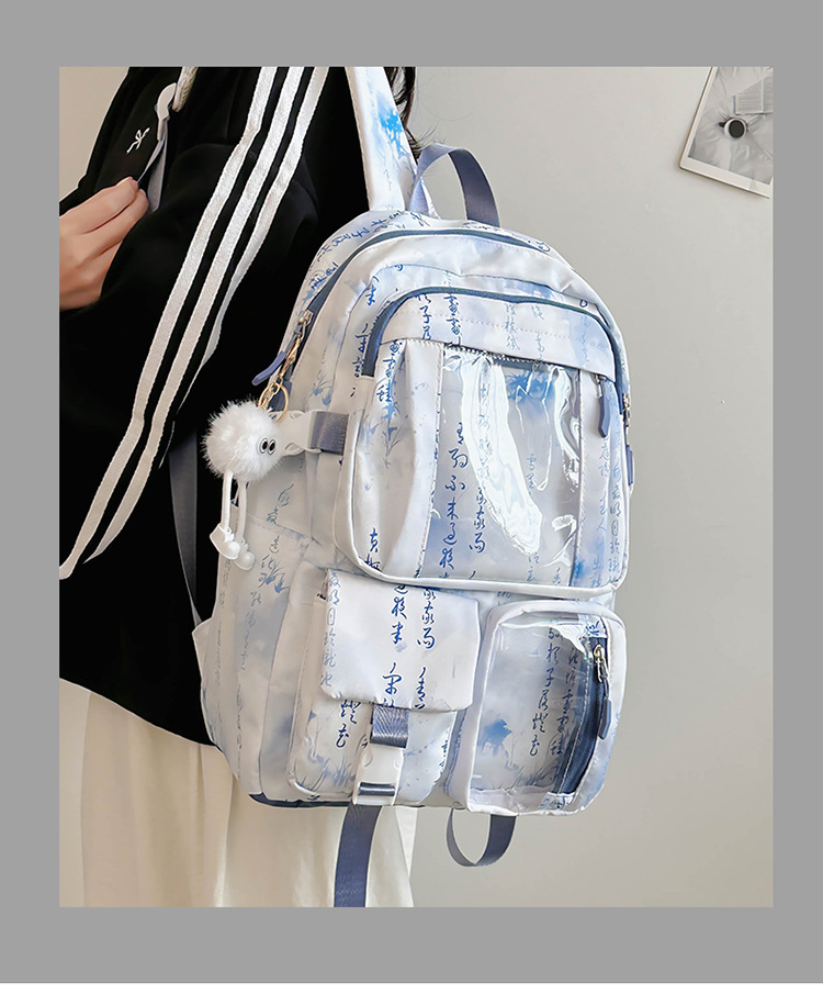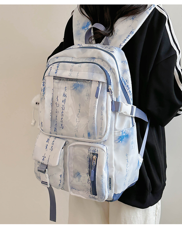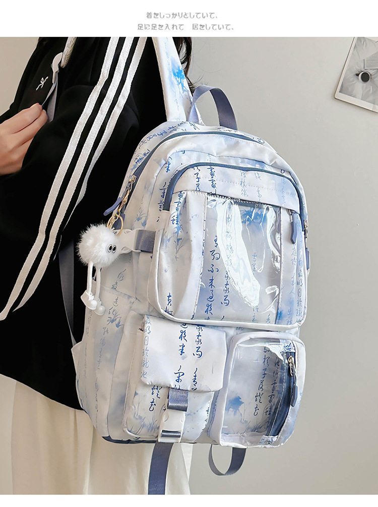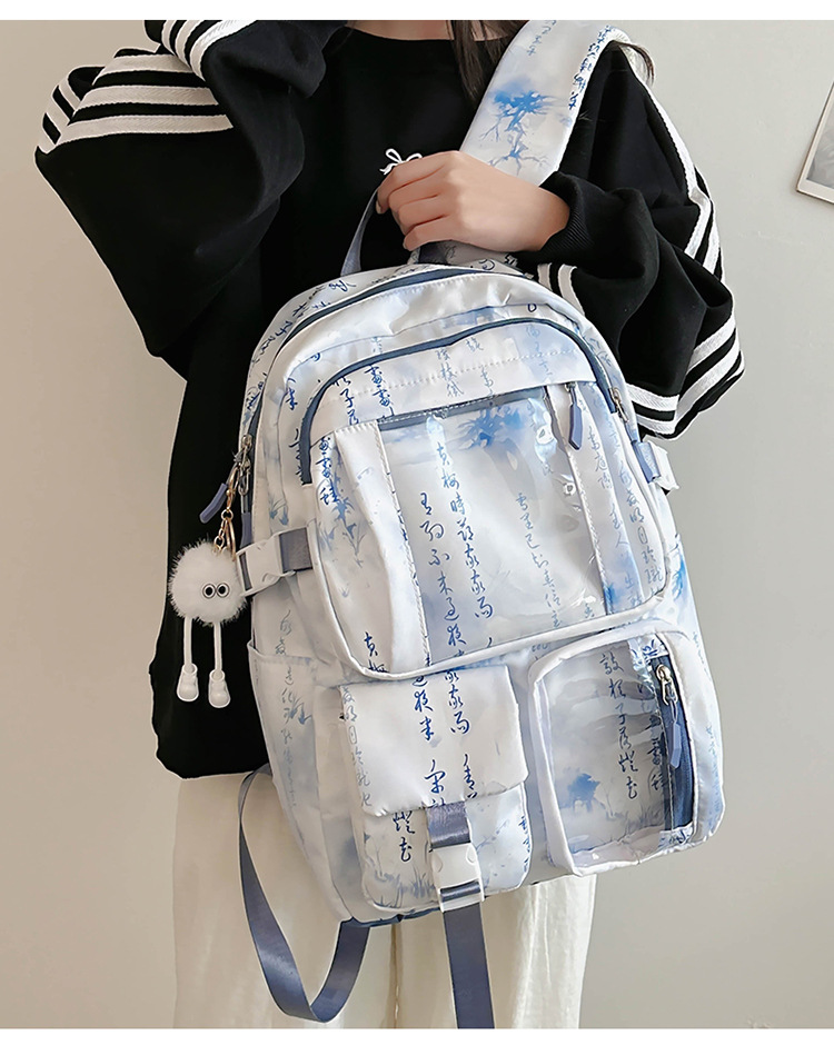 새로운 중국 스타일 국가 스타일 투명 스쿨백 여성 대용량 배낭 중학교 여자 고등학생 레저 컴퓨터 배낭스토어 가기