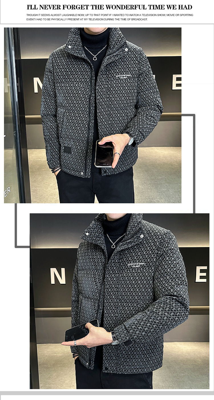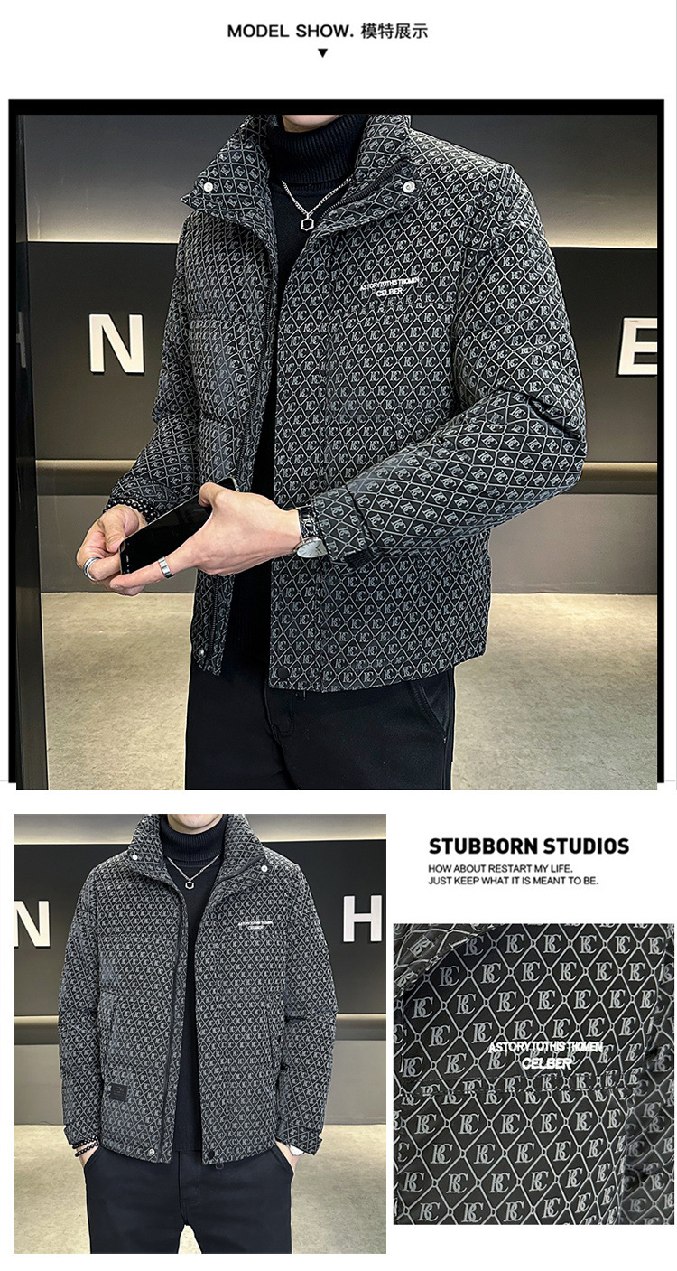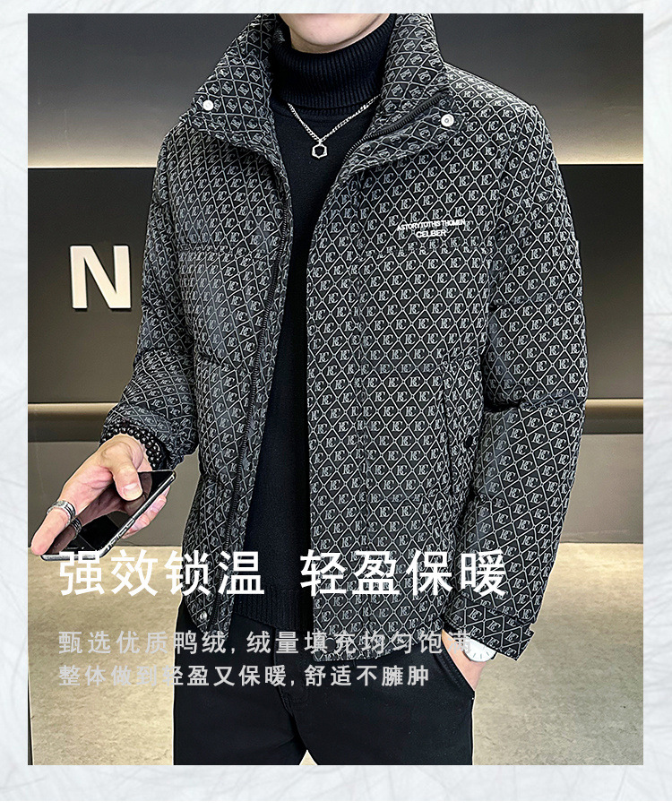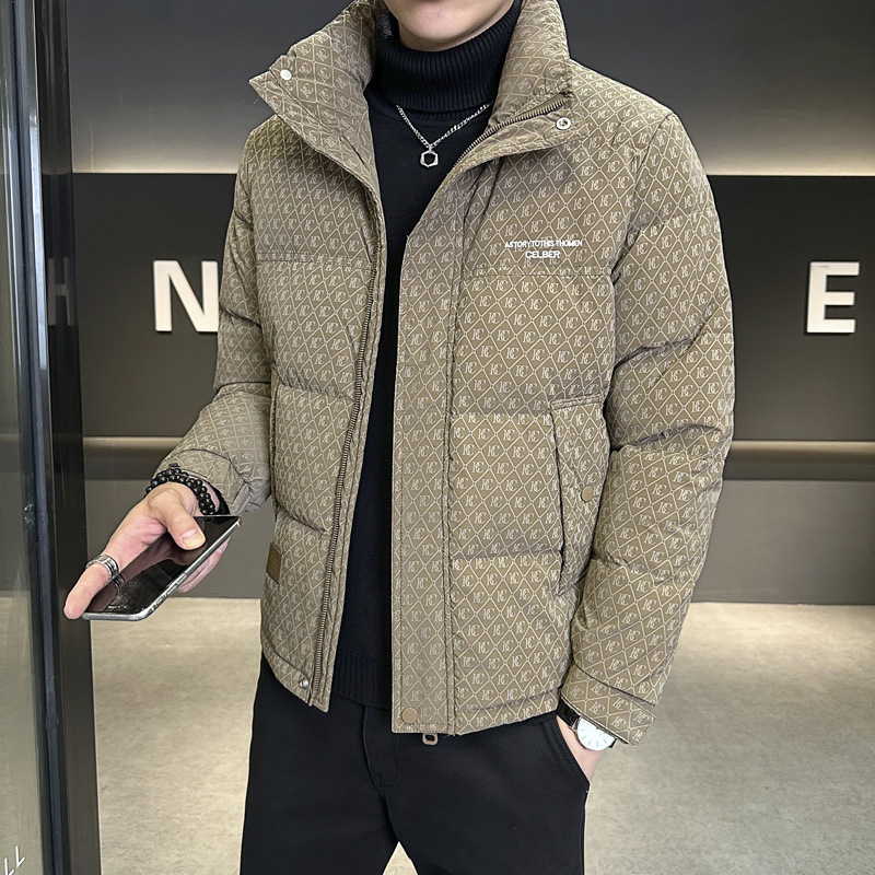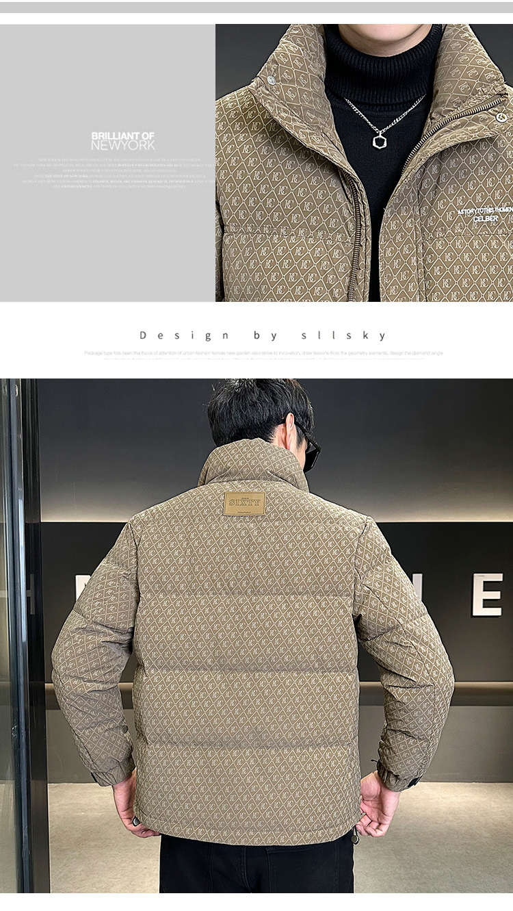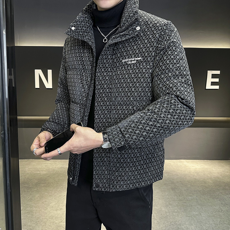 올오버 프린트 다운 재킷 남성용 트렌디 브랜드 겨울 고급 2025 신상 패션 스탠드 칼라 멋진 두꺼운 남성 겨울 코트스토어 가기