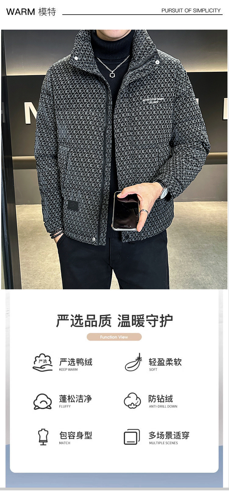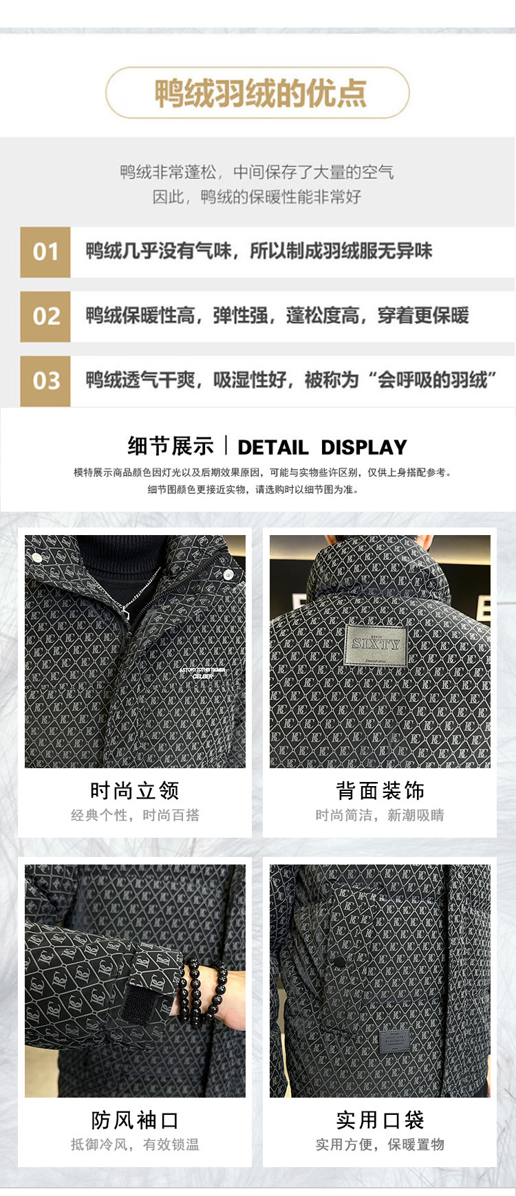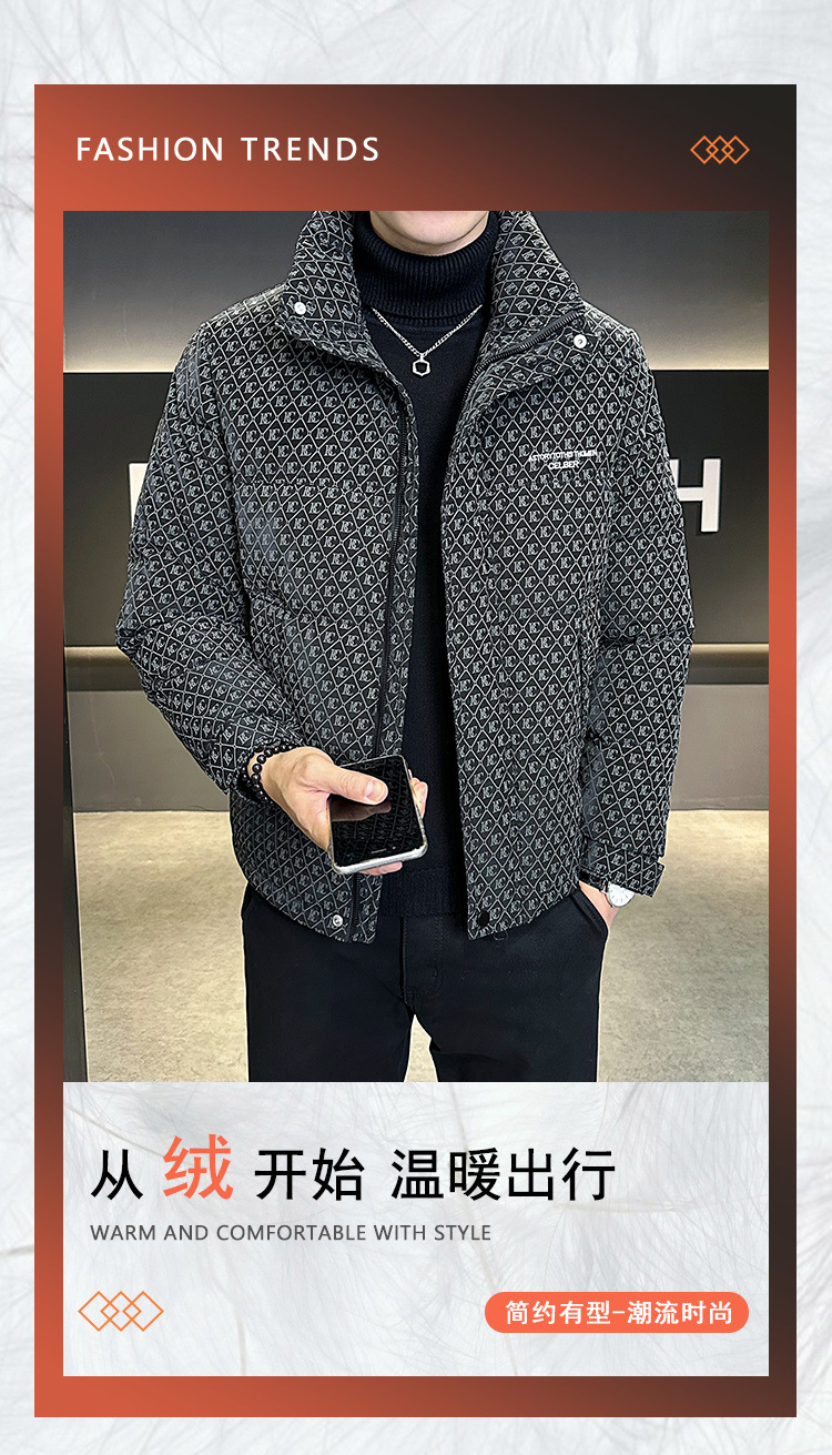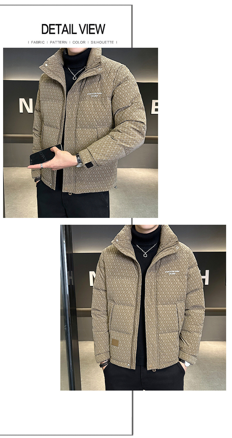 올오버 프린트 다운 재킷 남성용 트렌디 브랜드 겨울 고급 2025 신상 패션 스탠드 칼라 멋진 두꺼운 남성 겨울 코트스토어 가기