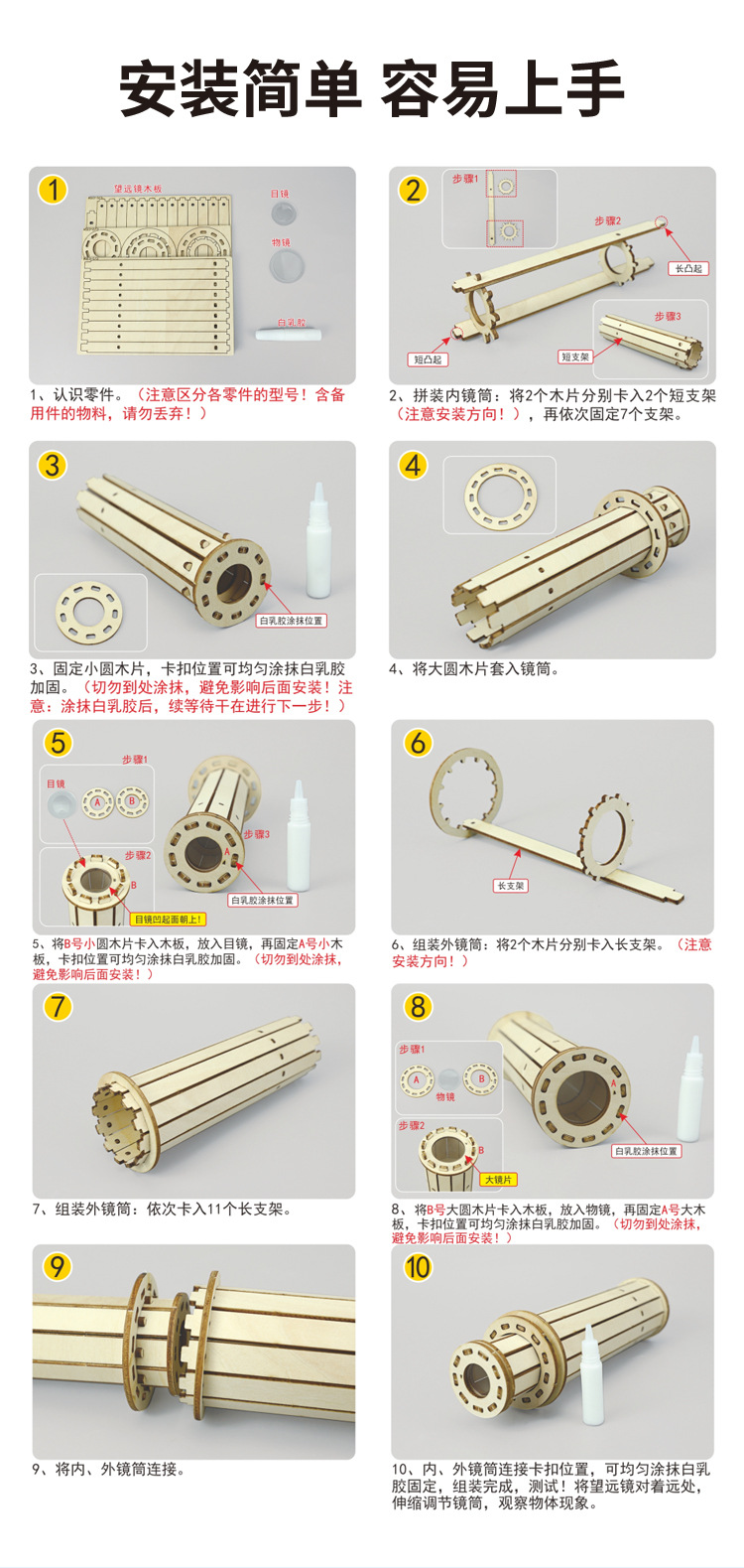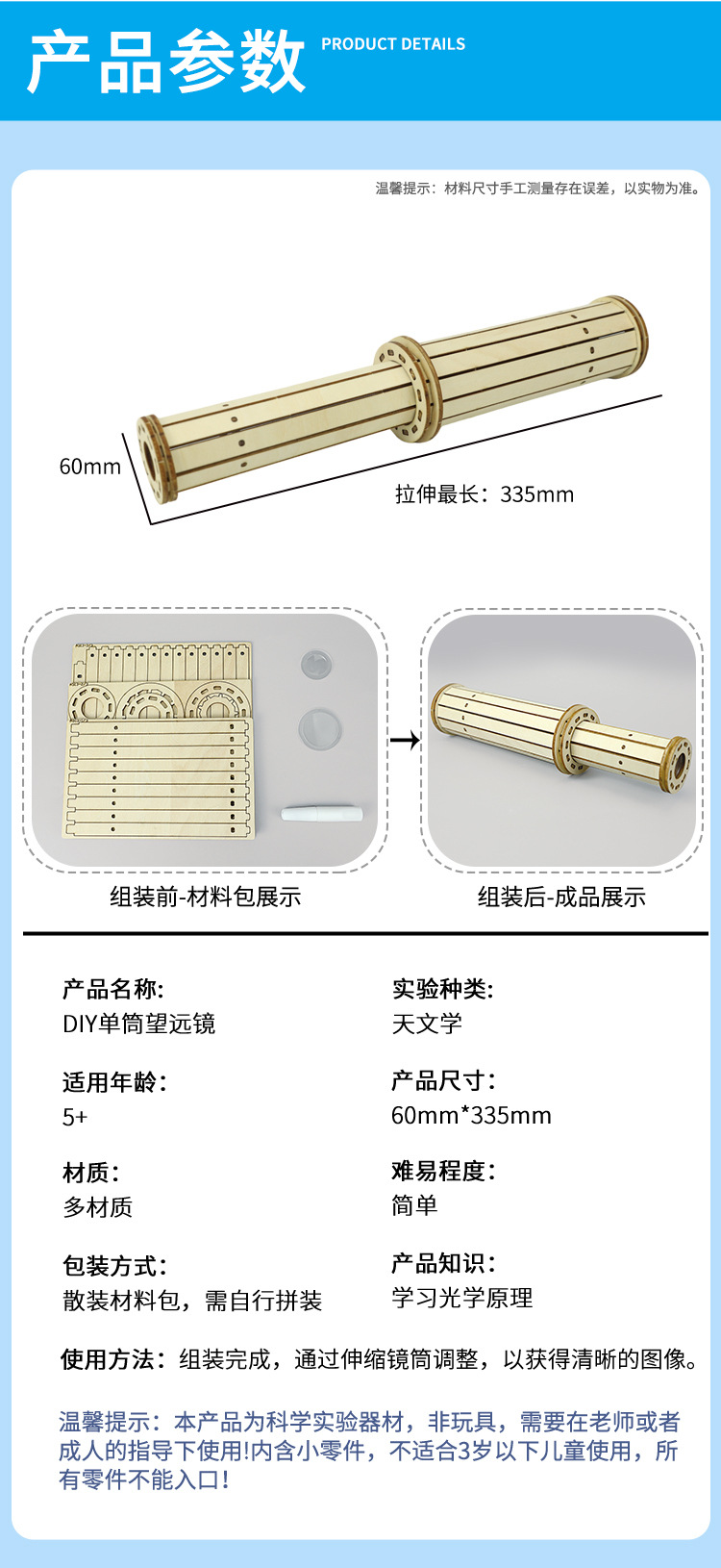 스팀 기술 소형 DIY 단안 망원경 광학 물리 과학 실험 수제 조립 장난감스토어 가기