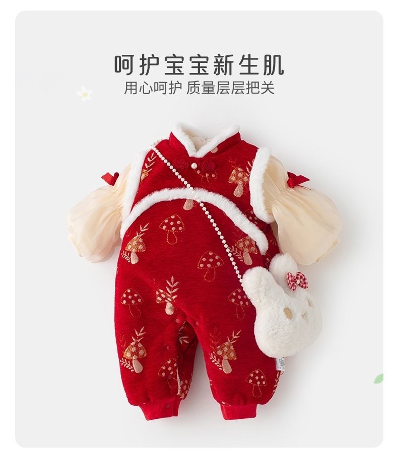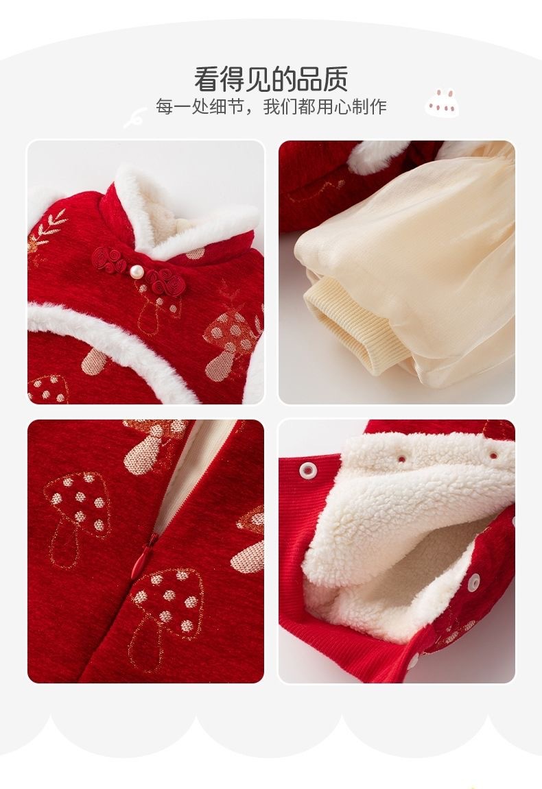 아기 옷 두꺼운 기모 바지 겨울 축제 중국 스타일 신년 옷 외부 착용 보름달 등반 아기 소녀를위한 옷