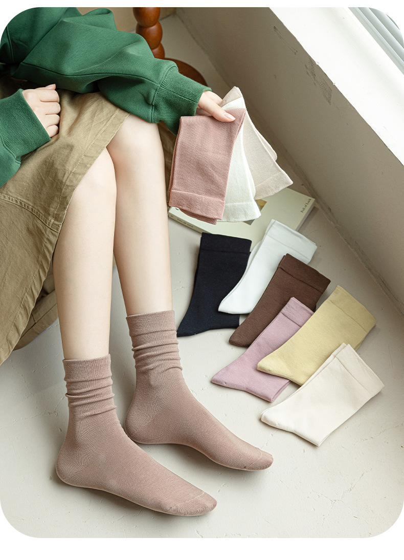 뼈없는 양말 어린이 가을과 겨울 느슨한 달 양말 솔리드 컬러 올 매치 미드 튜브 양말 인터넷 인기 여성면 양말 스택 양말