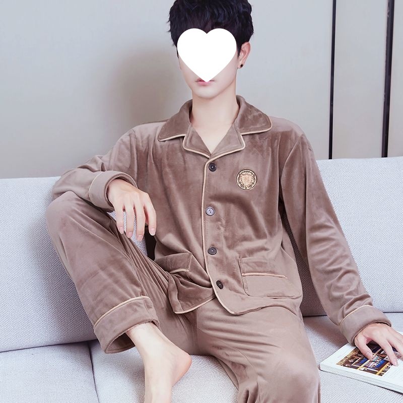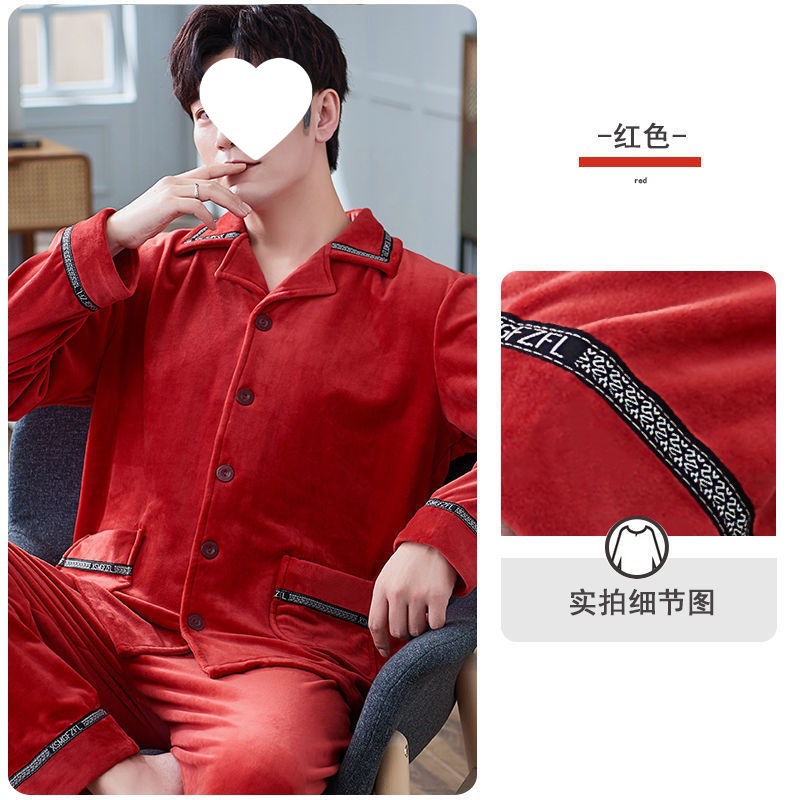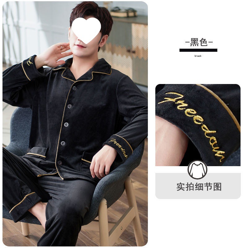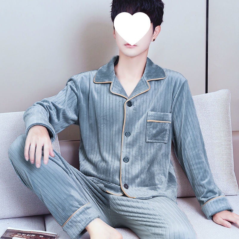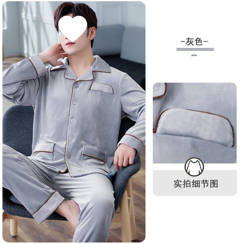 남자 잠옷 섬 벨벳 2024 새로운 가을과 겨울 카디건 코랄 벨벳 단색 홈 의류 세트 의류스토어 가기
