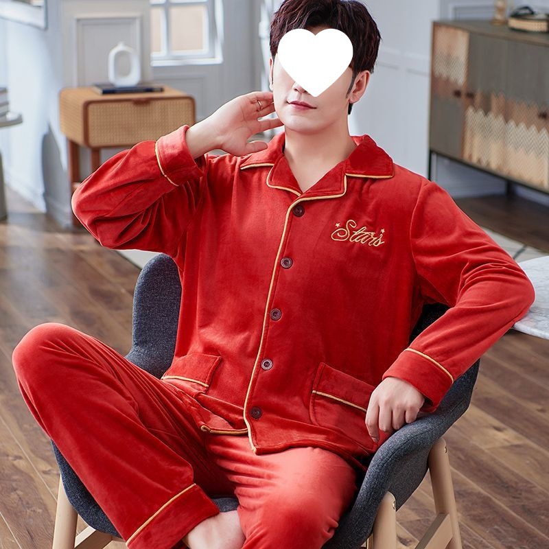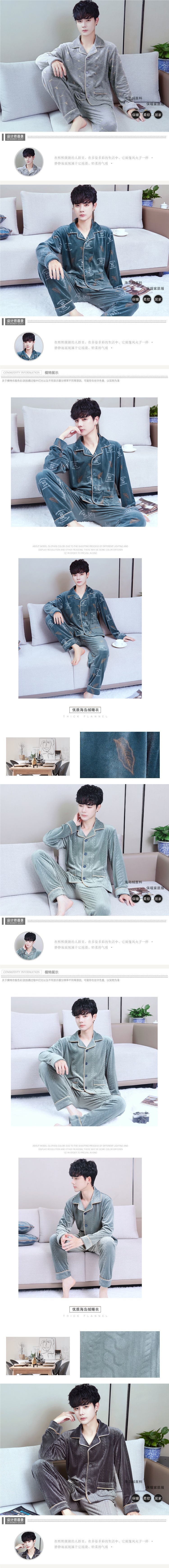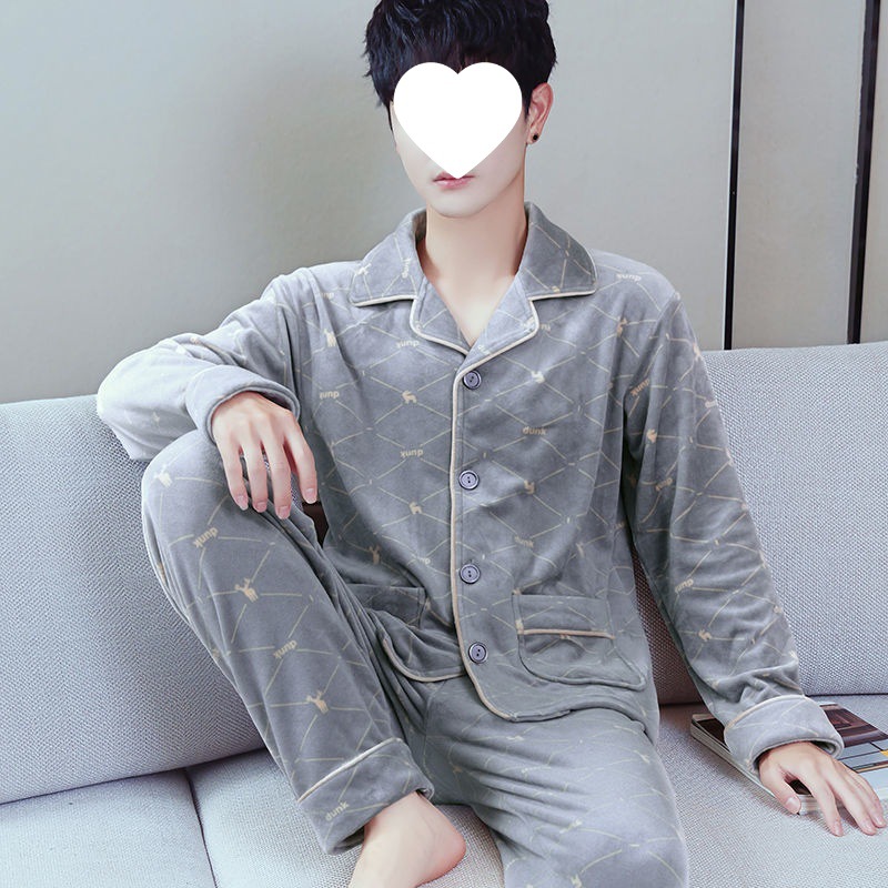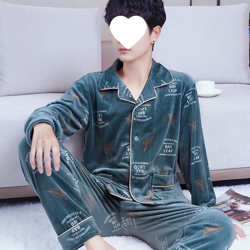 남자 잠옷 섬 벨벳 2024 새로운 가을과 겨울 카디건 코랄 벨벳 단색 홈 의류 세트 의류스토어 가기