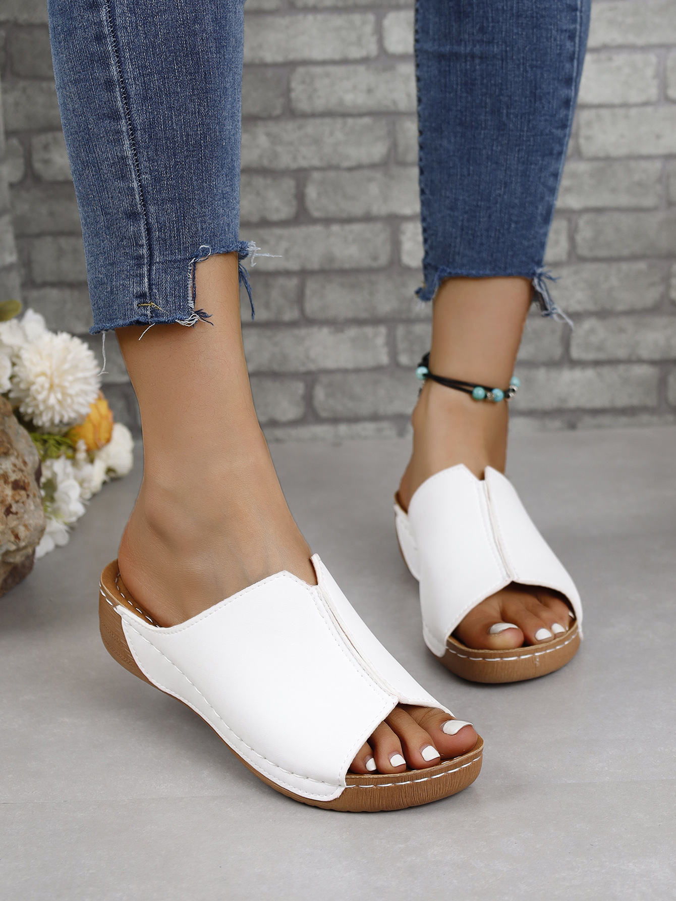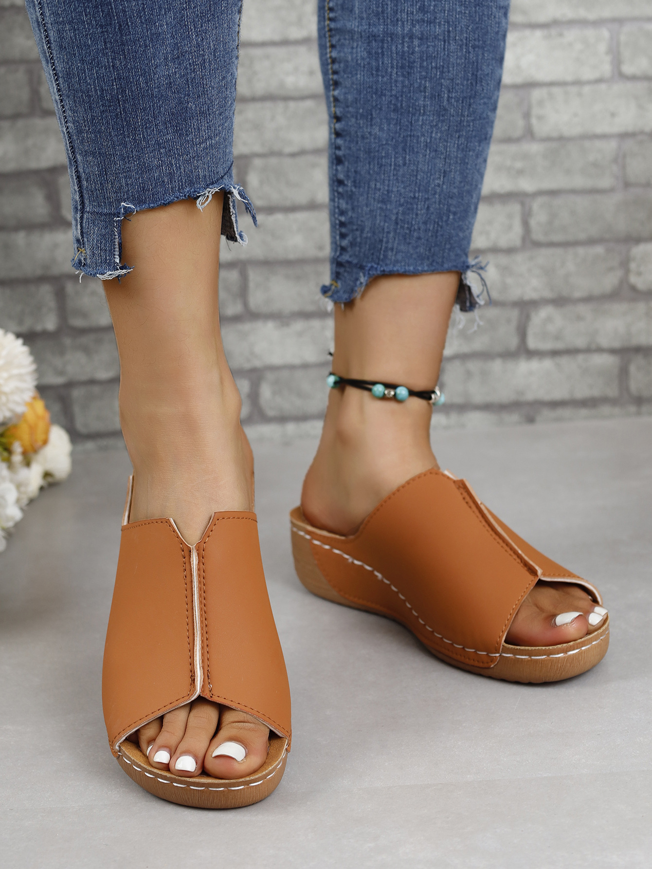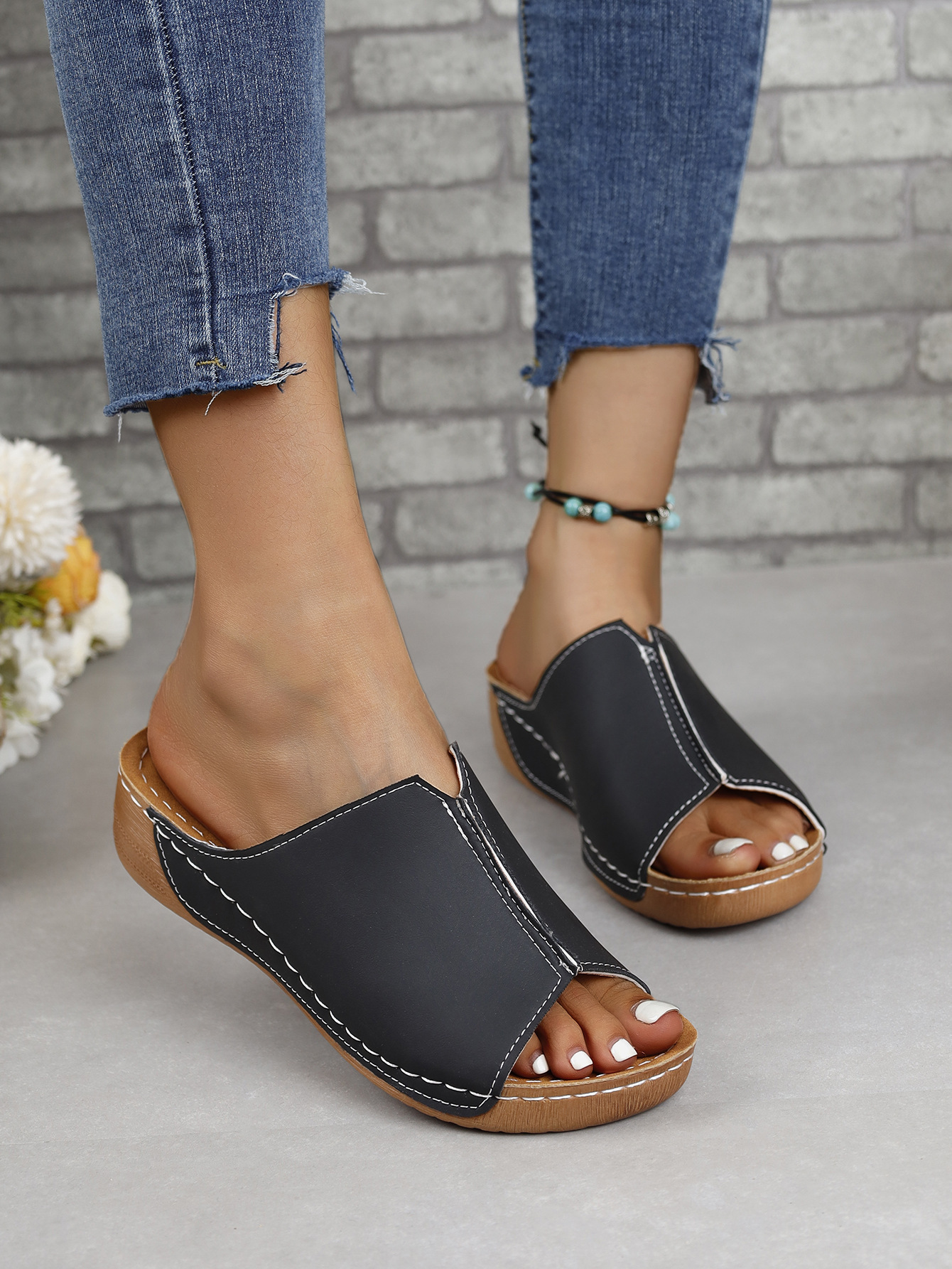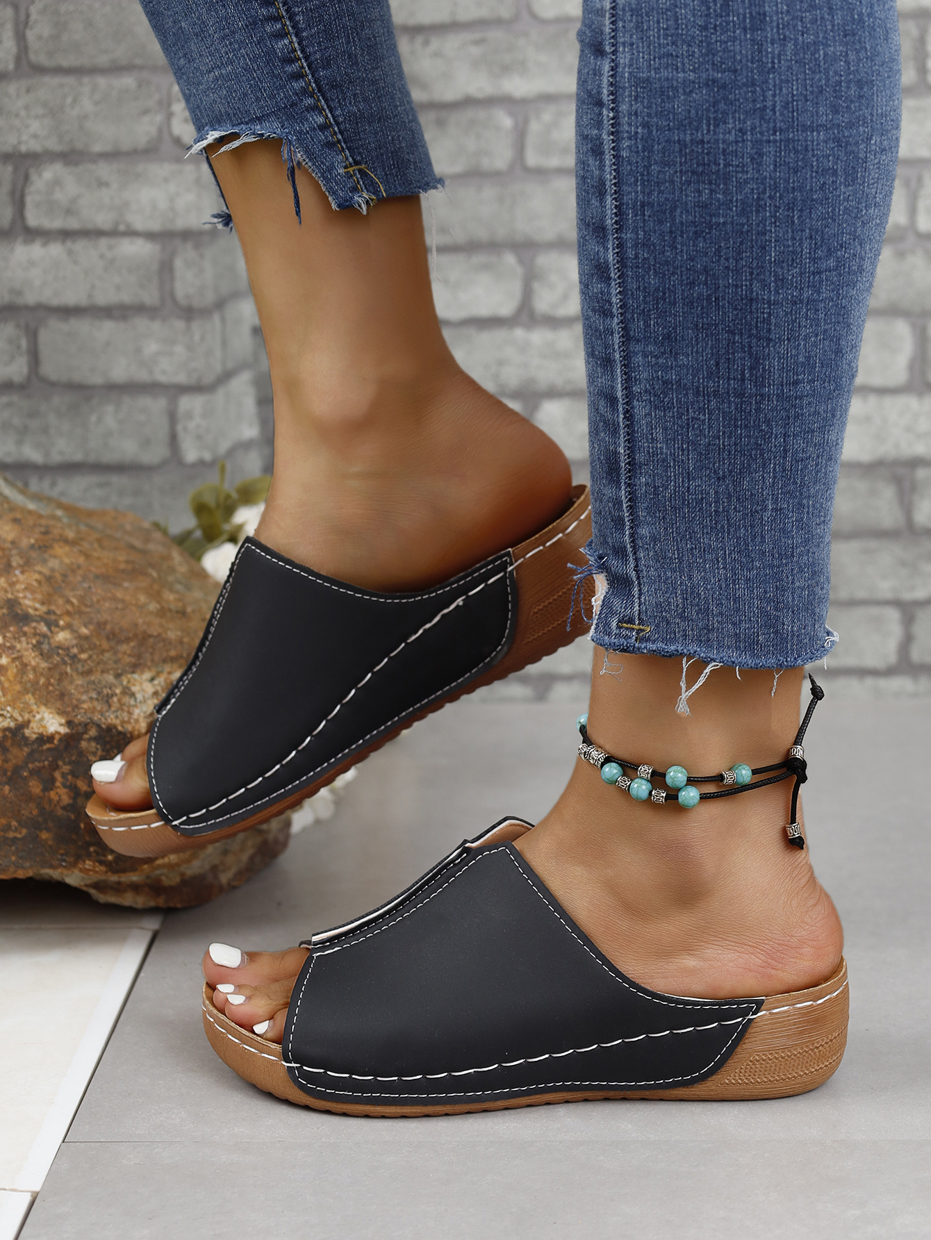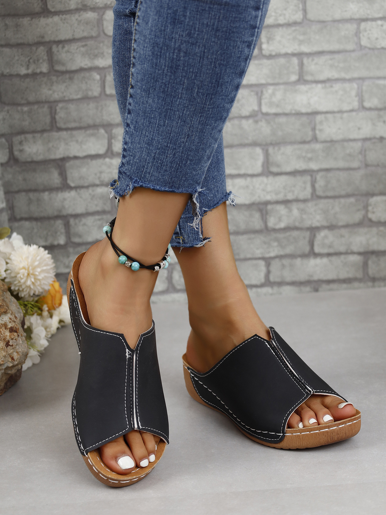 국경 간 유럽과 미국의 대외 무역 여성 신발 편안한 쐐기 독립 역 슬리퍼 간단한 플러스 사이즈 2024 여성을위한 새로운 샌들스토어 가기