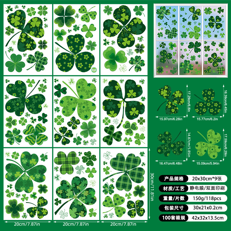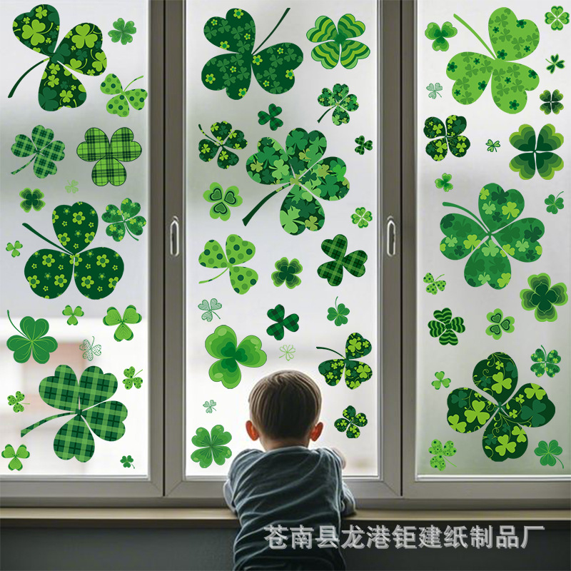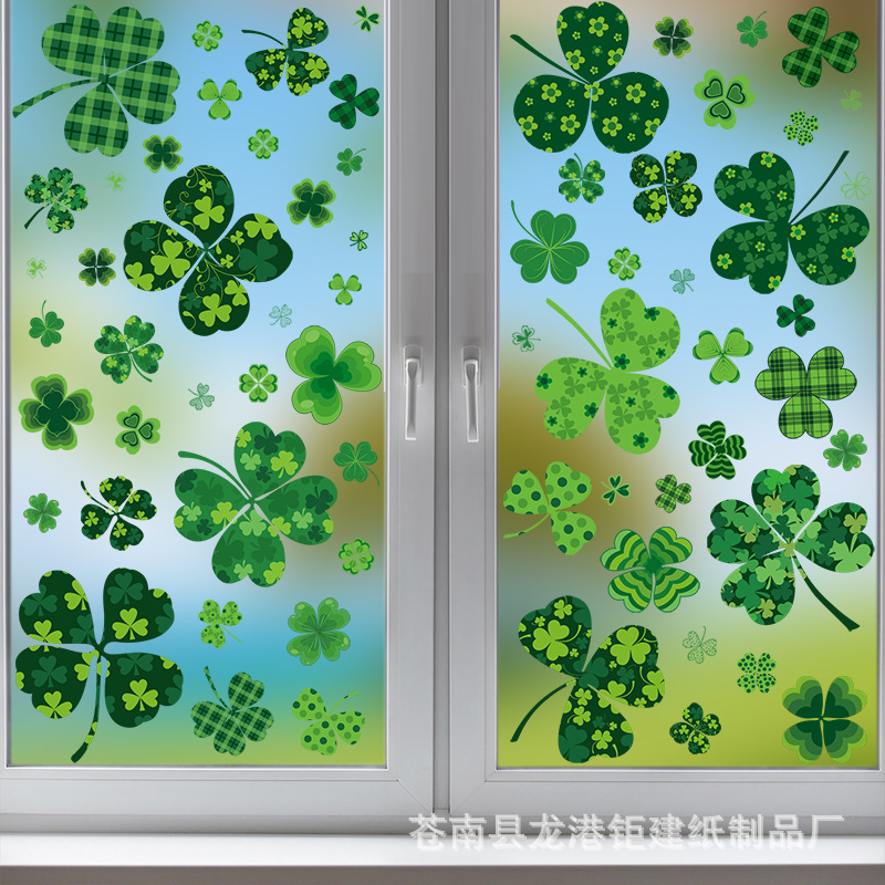 새로운 국경 아마존 세인트 패트릭 창 스티커 아일랜드 축제 창 유리 장식 스티커 냉장고 스티커스토어 가기