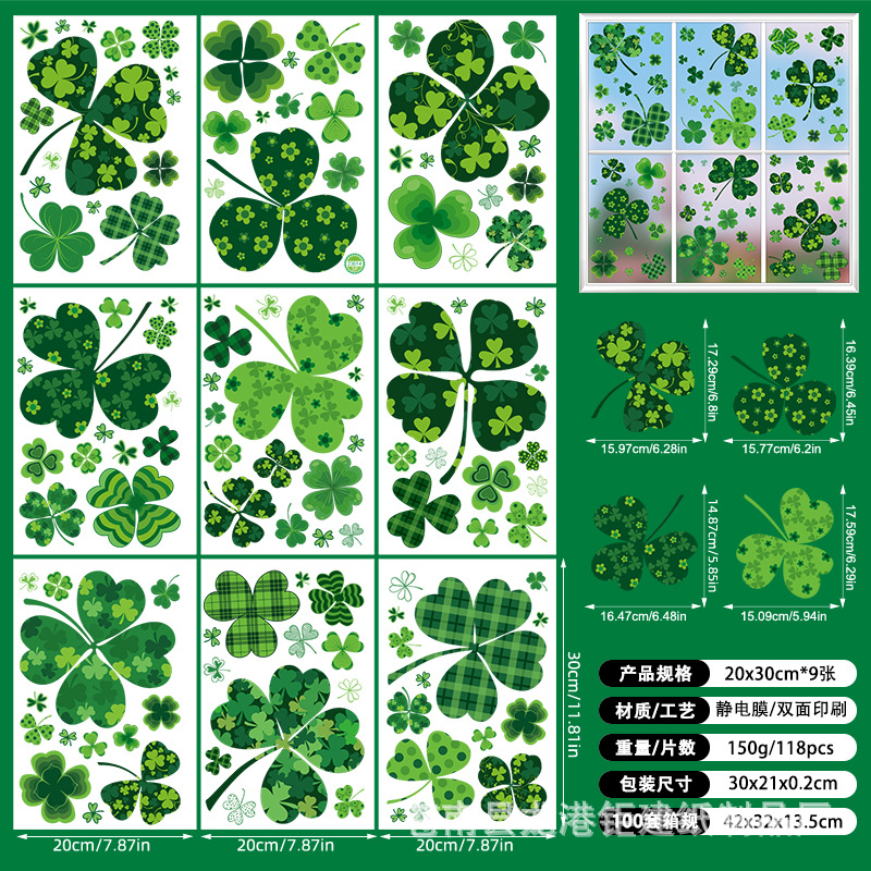 새로운 국경 아마존 세인트 패트릭 창 스티커 아일랜드 축제 창 유리 장식 스티커 냉장고 스티커