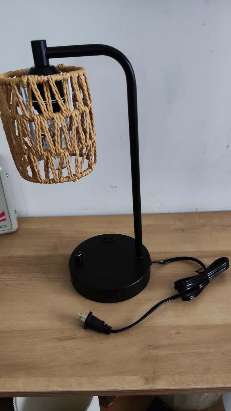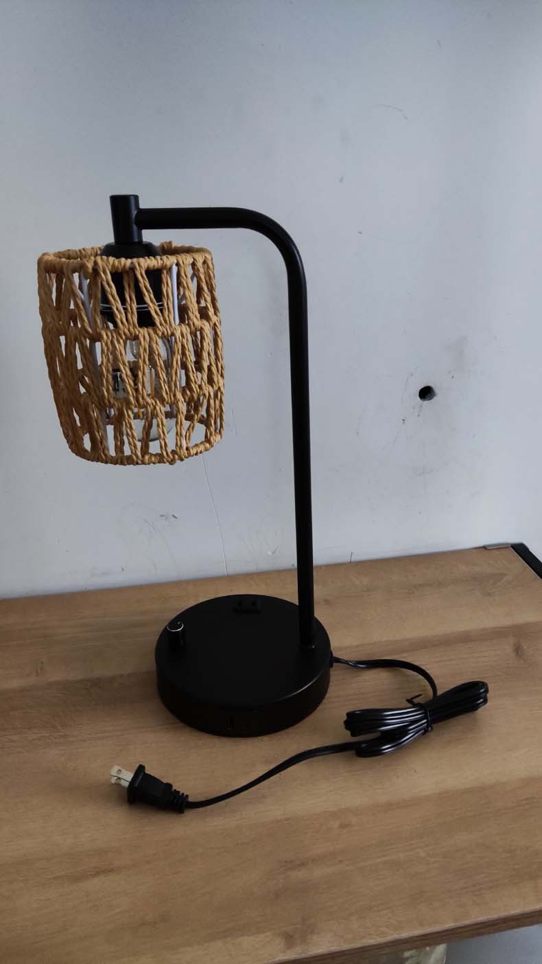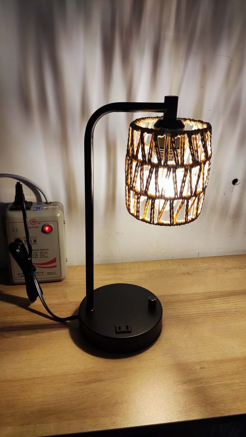 국경 전용 북유럽 간단한 복고풍 산업 등나무 테이블 램프 회전 디밍 usb 침실 침대 옆 램프 장식 램프스토어 가기