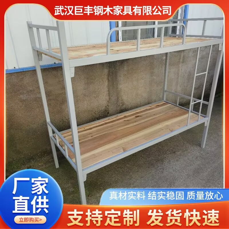 공장제 철제 침대 학생 기숙사 이층 철제 침대 40평 이층침대 내구성 강철 목재 침대 두꺼운 강철 프레임