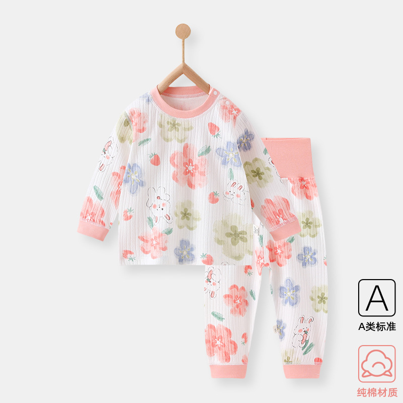 아기의 따뜻한 내복이 봄과 가을을 쪼개지는 세트 순수한 면화 아기 소녀의 높은 허리 배꼽 보호 아기의 가을 옷과 바지스토어 가기