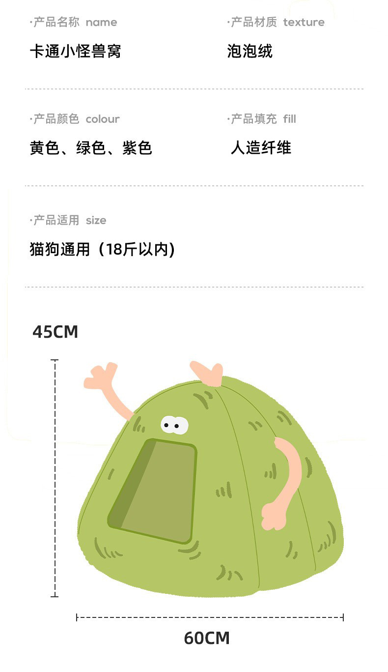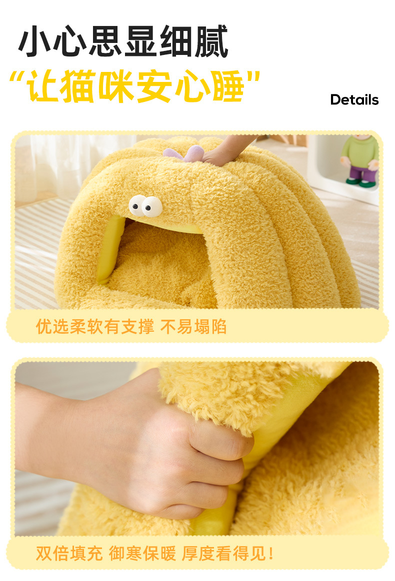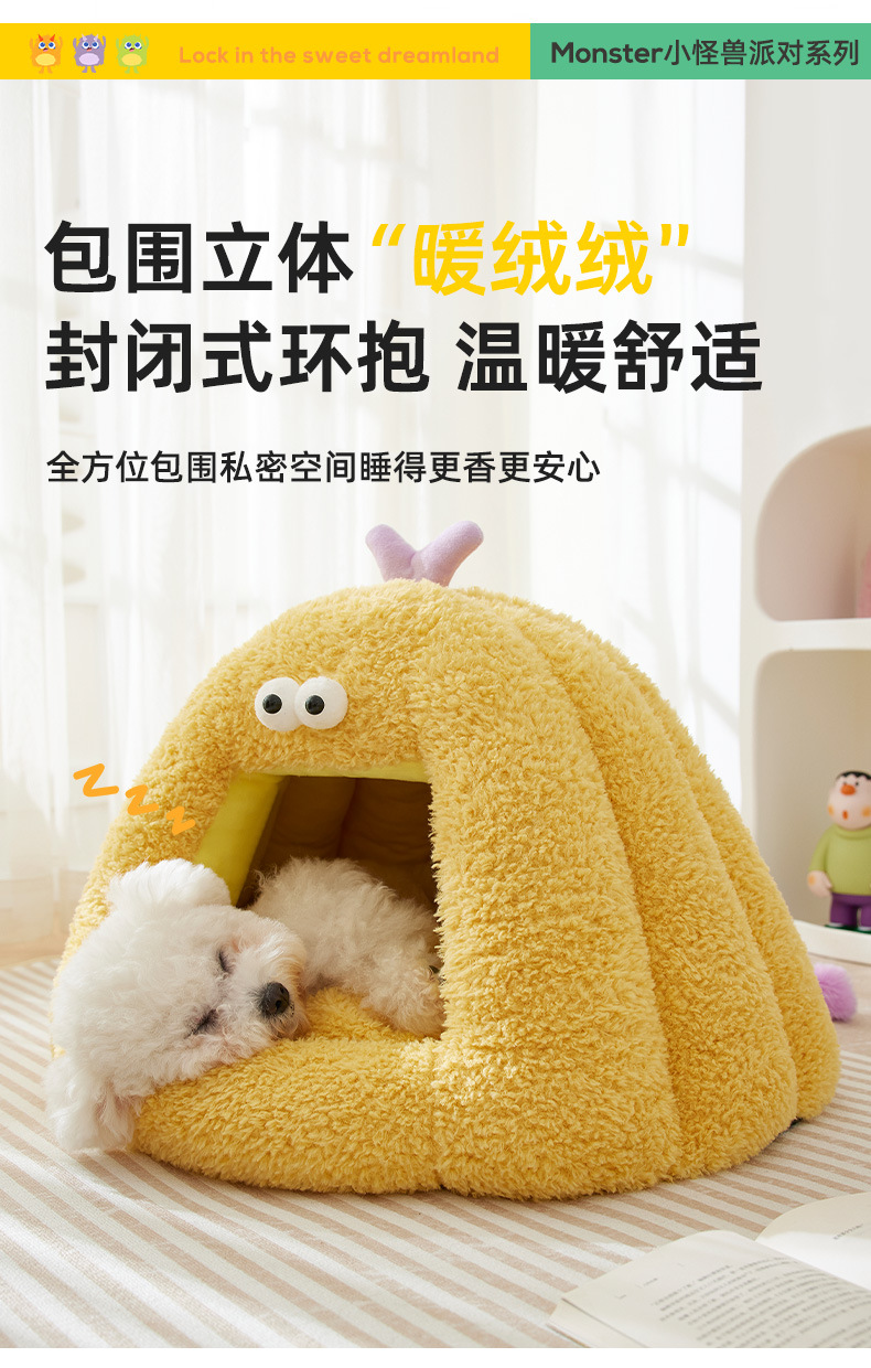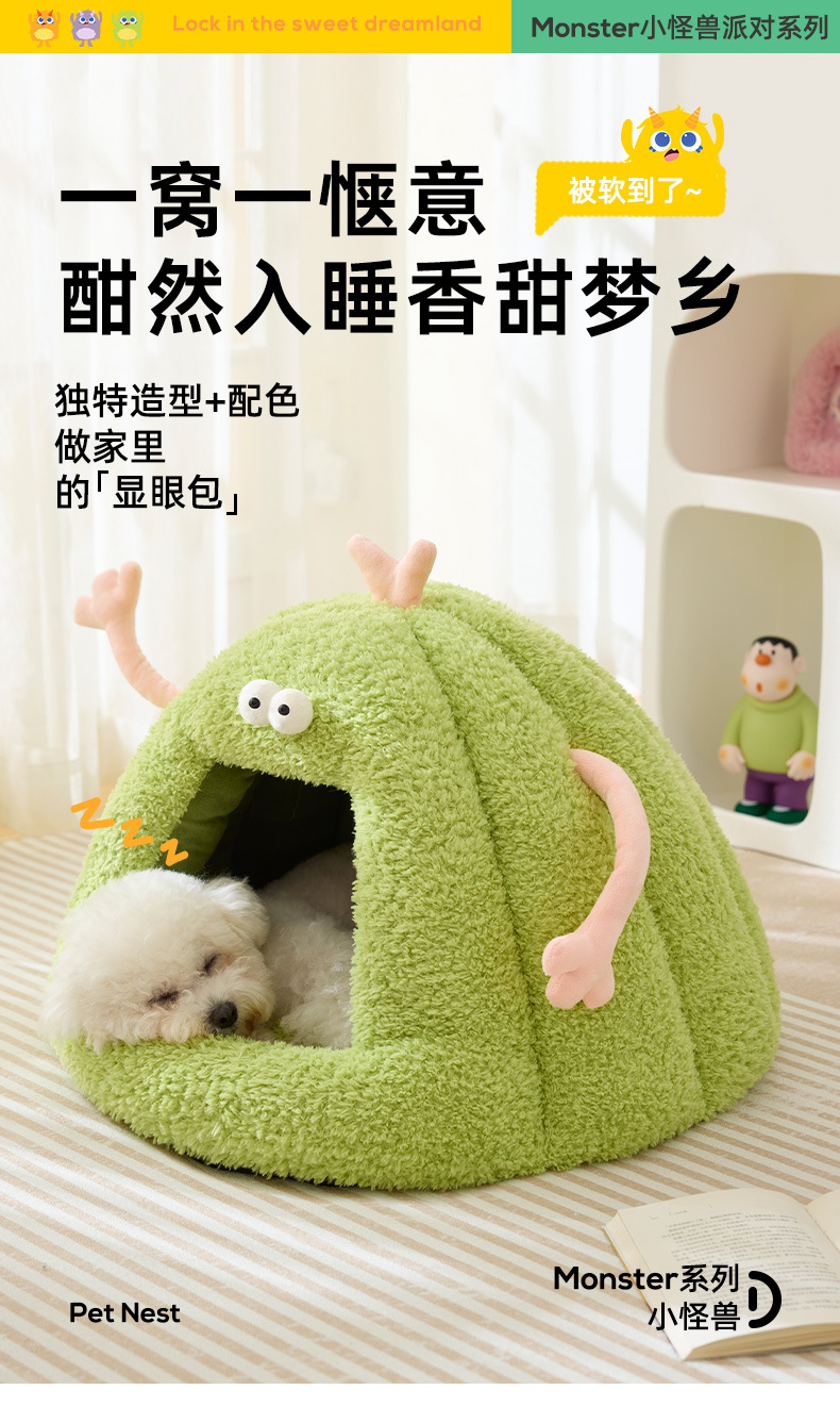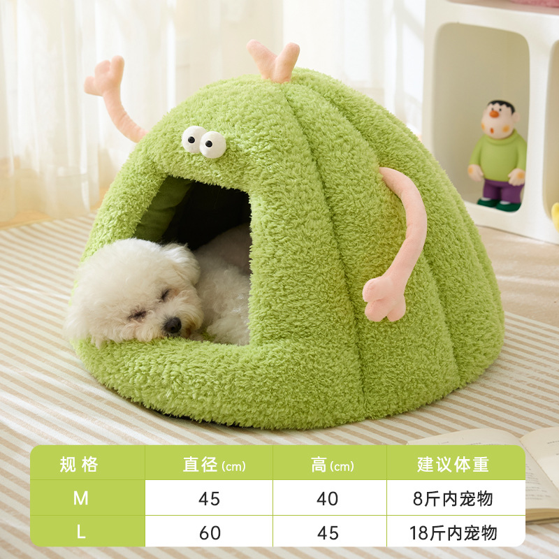 새로운 개 사육장 겨울 따뜻한 반 폐쇄 고양이 둥지 매트 가을과 겨울 작은 괴물 모양 고양이 애완 동물 용품 도매스토어 가기