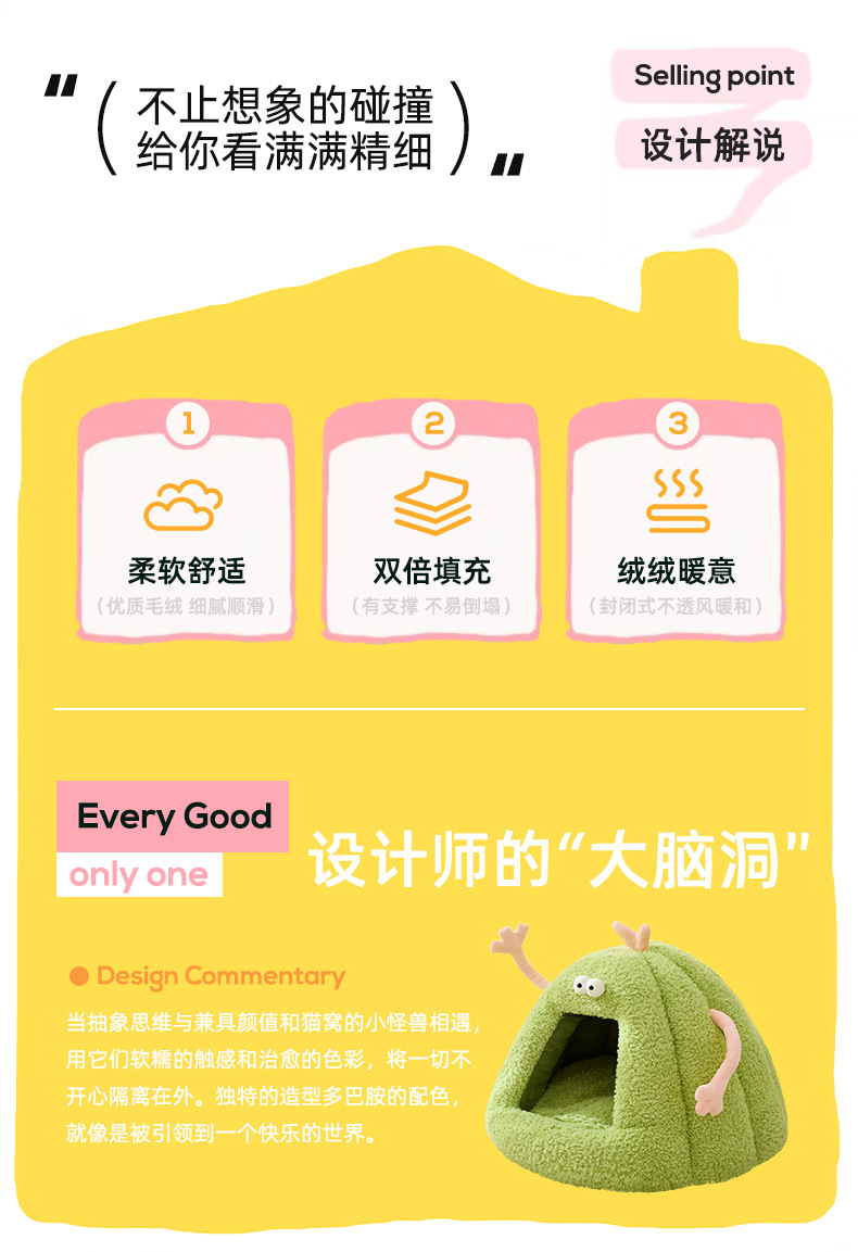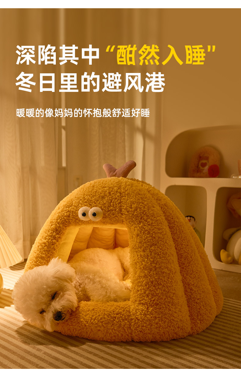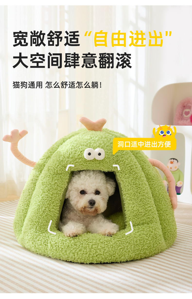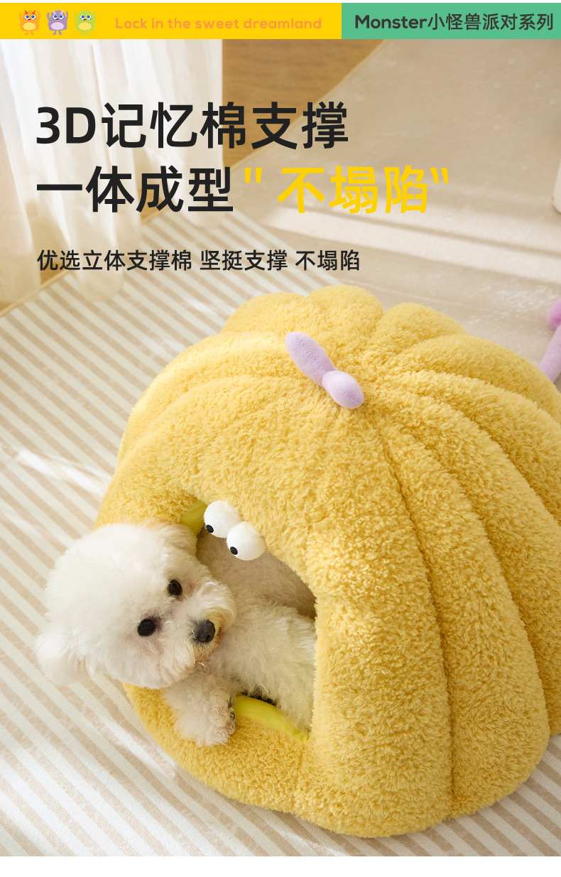 새로운 개 사육장 겨울 따뜻한 반 폐쇄 고양이 둥지 매트 가을과 겨울 작은 괴물 모양 고양이 애완 동물 용품 도매스토어 가기