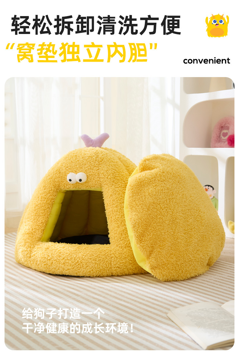 새로운 개 사육장 겨울 따뜻한 반 폐쇄 고양이 둥지 매트 가을과 겨울 작은 괴물 모양 고양이 애완 동물 용품 도매