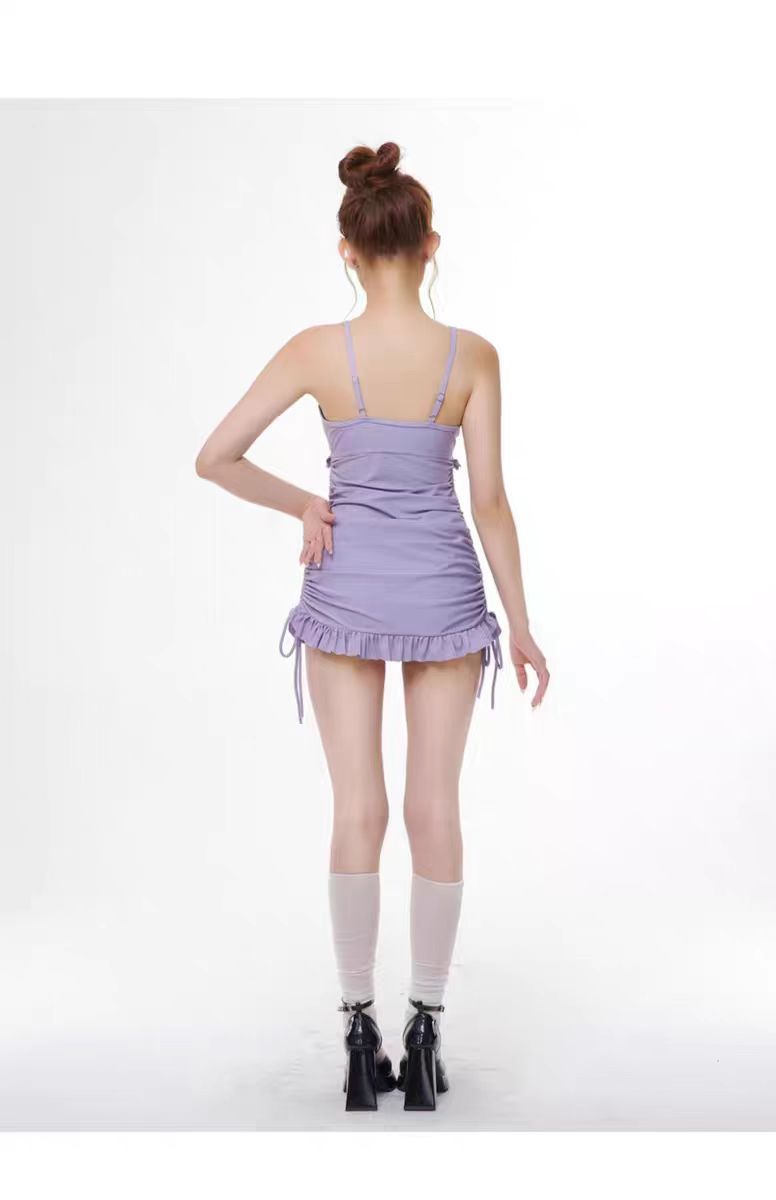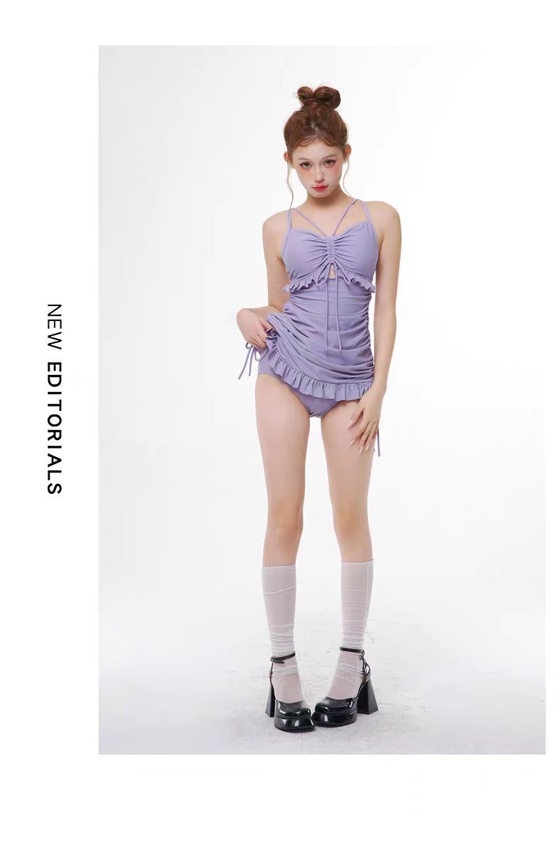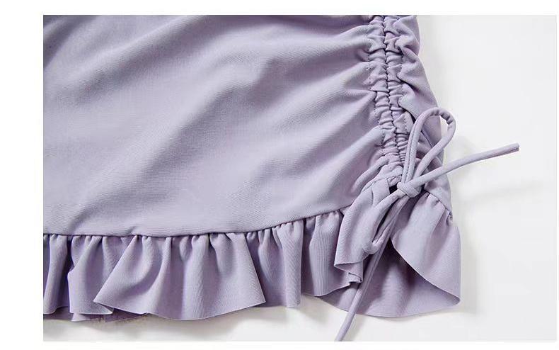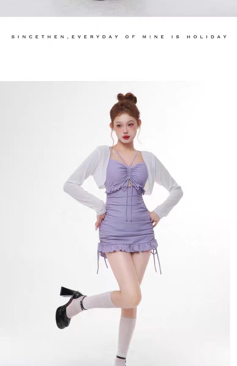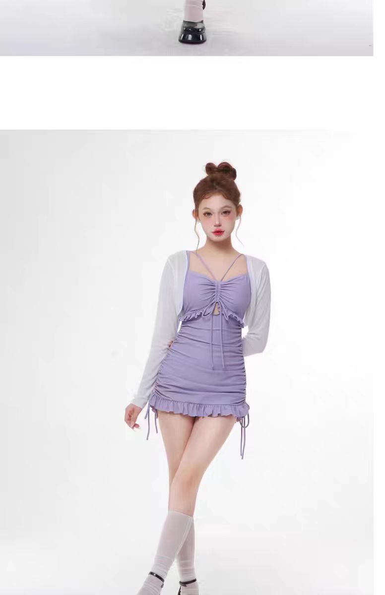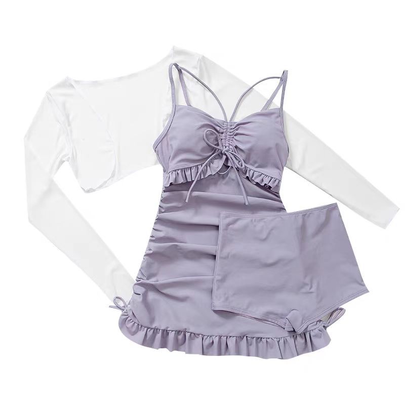 수영복 여성용 솔리드 컬러 소녀의 신선한 긴팔 3 피스 세트 복서 보수적 인 슬림 핏 온천 전문 수영복스토어 가기