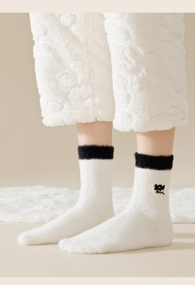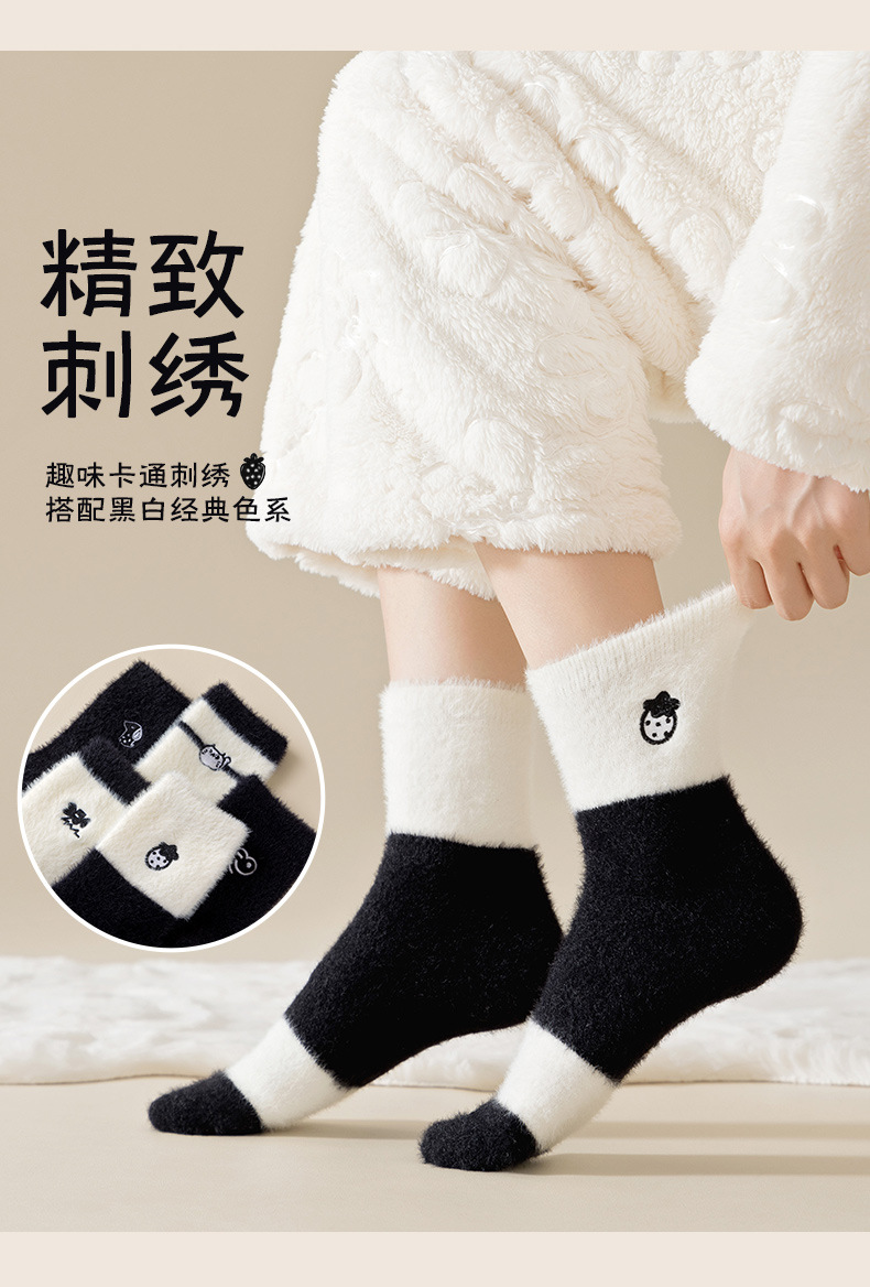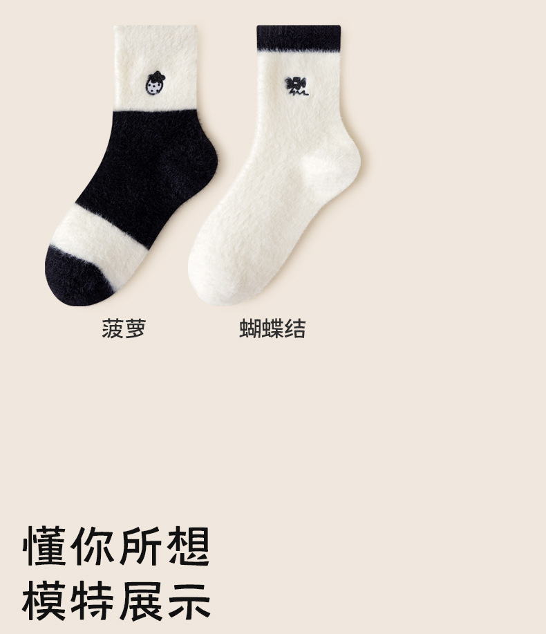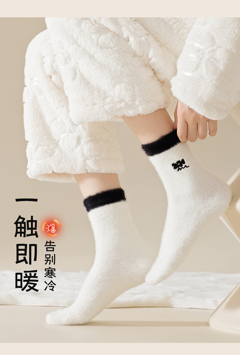 여성용 양말 가을 겨울 흑백 밍크 벨벳 중간 길이 보온 2025 신상품 도매 주지이 원산지 공장스토어 가기