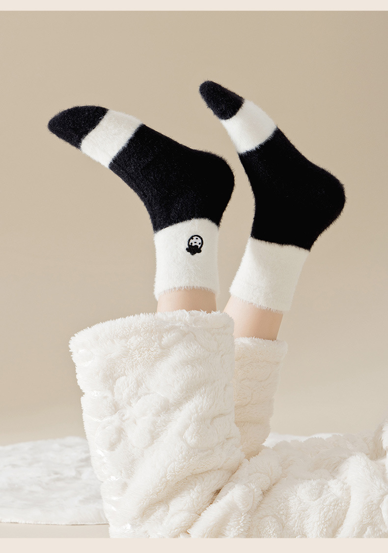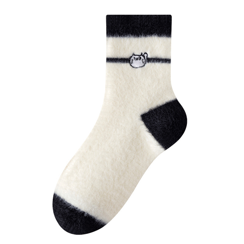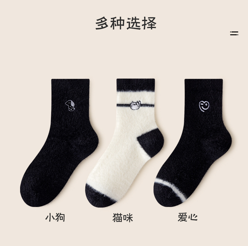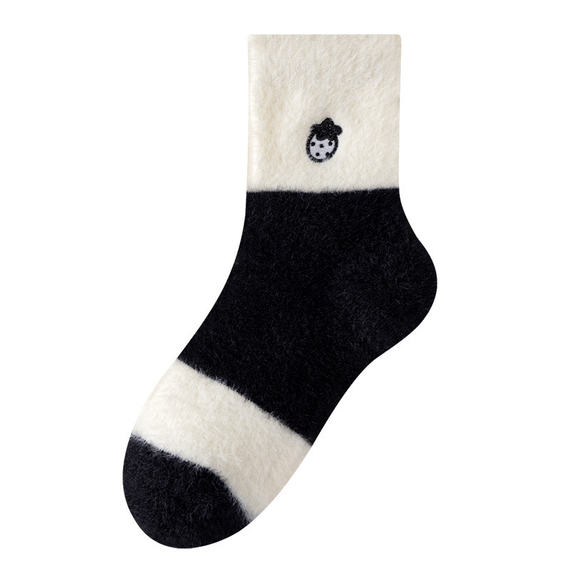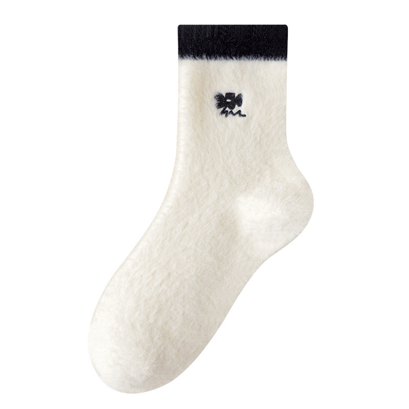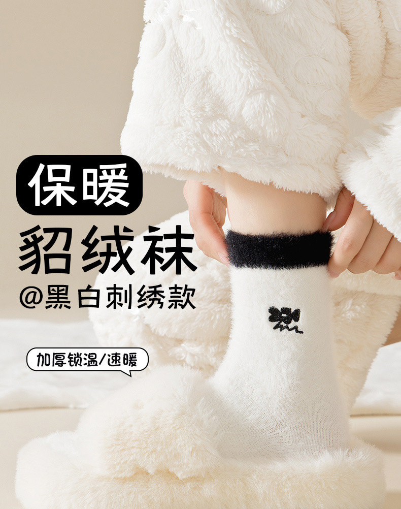 여성용 양말 가을 겨울 흑백 밍크 벨벳 중간 길이 보온 2025 신상품 도매 주지이 원산지 공장스토어 가기