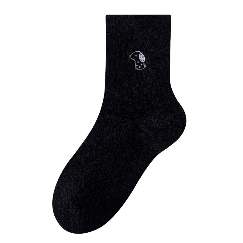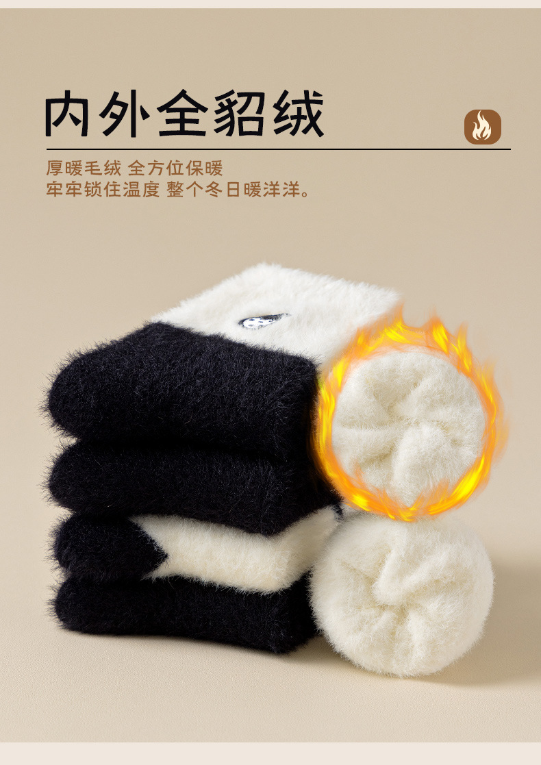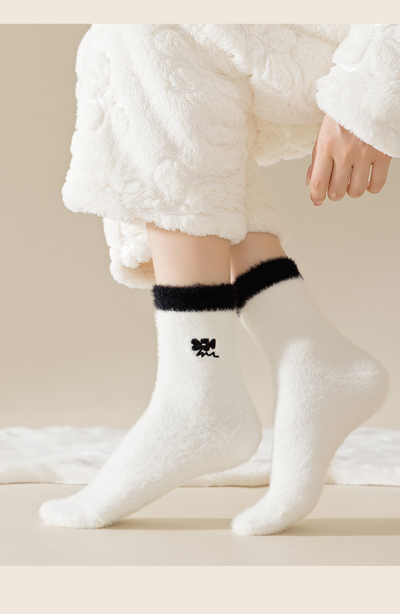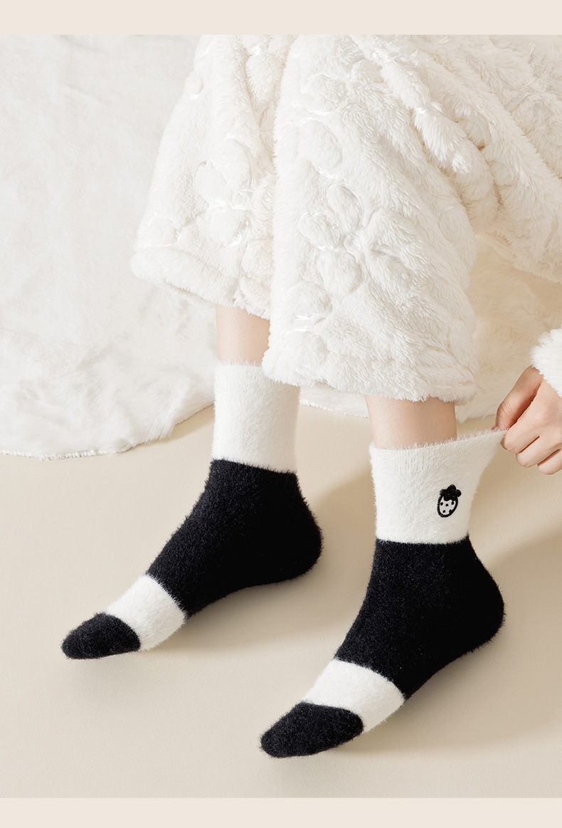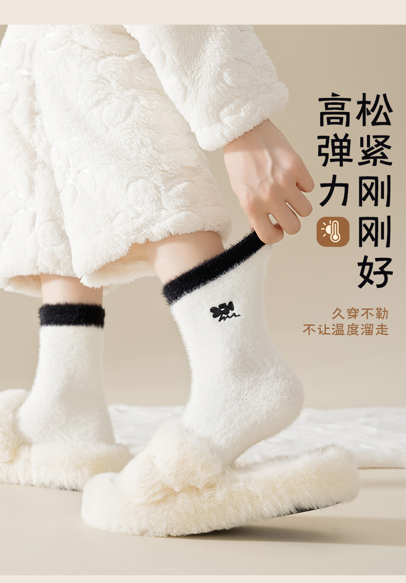 여성용 양말 가을 겨울 흑백 밍크 벨벳 중간 길이 보온 2025 신상품 도매 주지이 원산지 공장