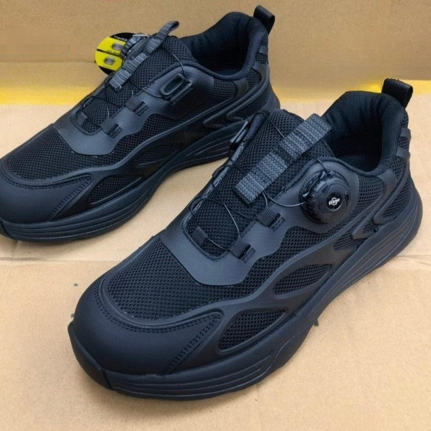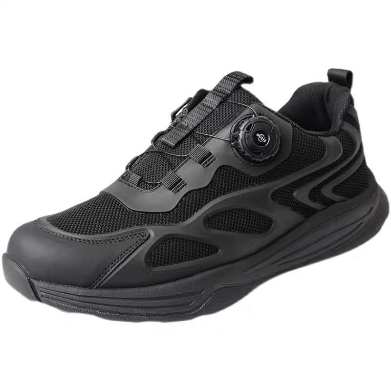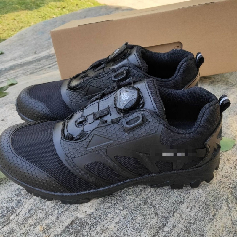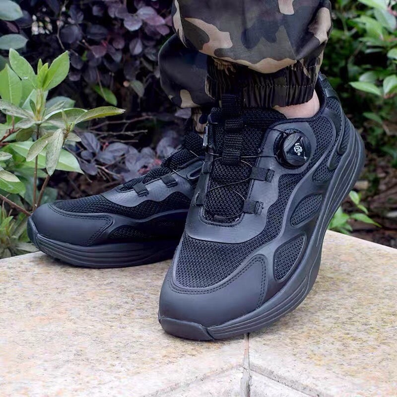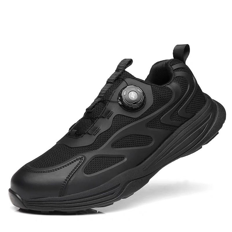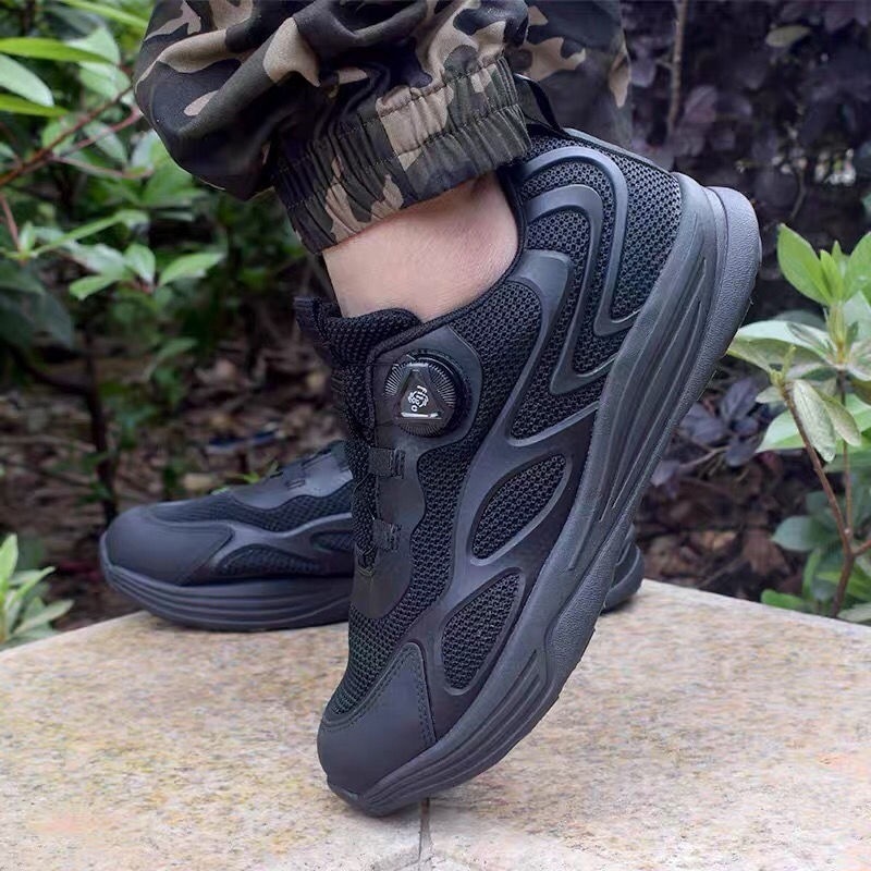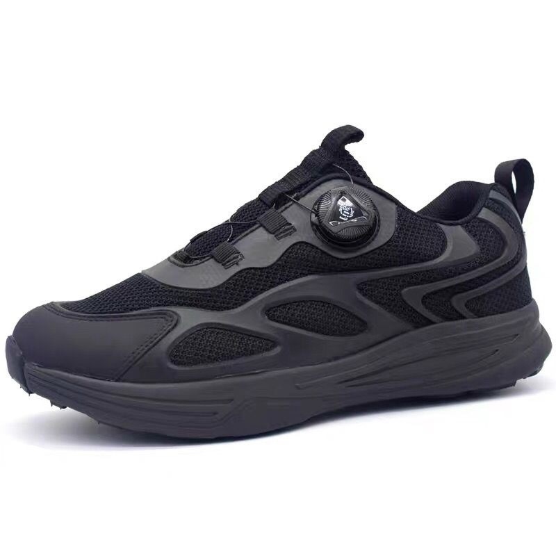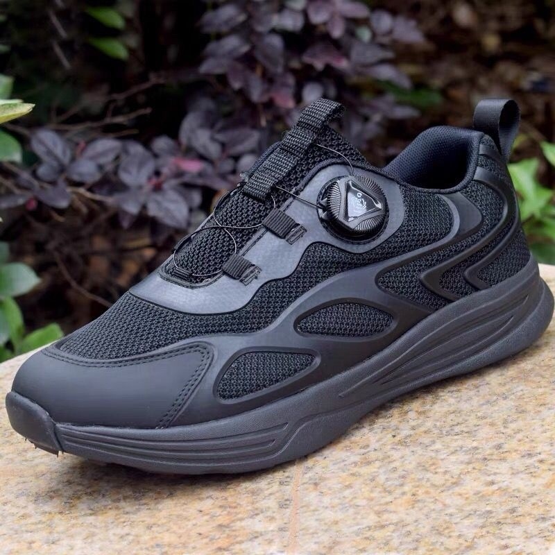 新款式通勤作训鞋旋转扣超轻快速扣跑步鞋男黑色夏季透气休闲跑鞋