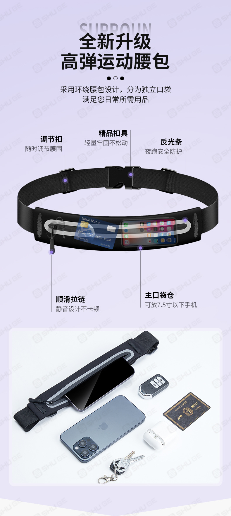 2025 고급 초경량 충격 방지 라이크라 방수 반사 남성 및 여성 야외 스포츠 러닝 특수 휴대 전화 허리 가방