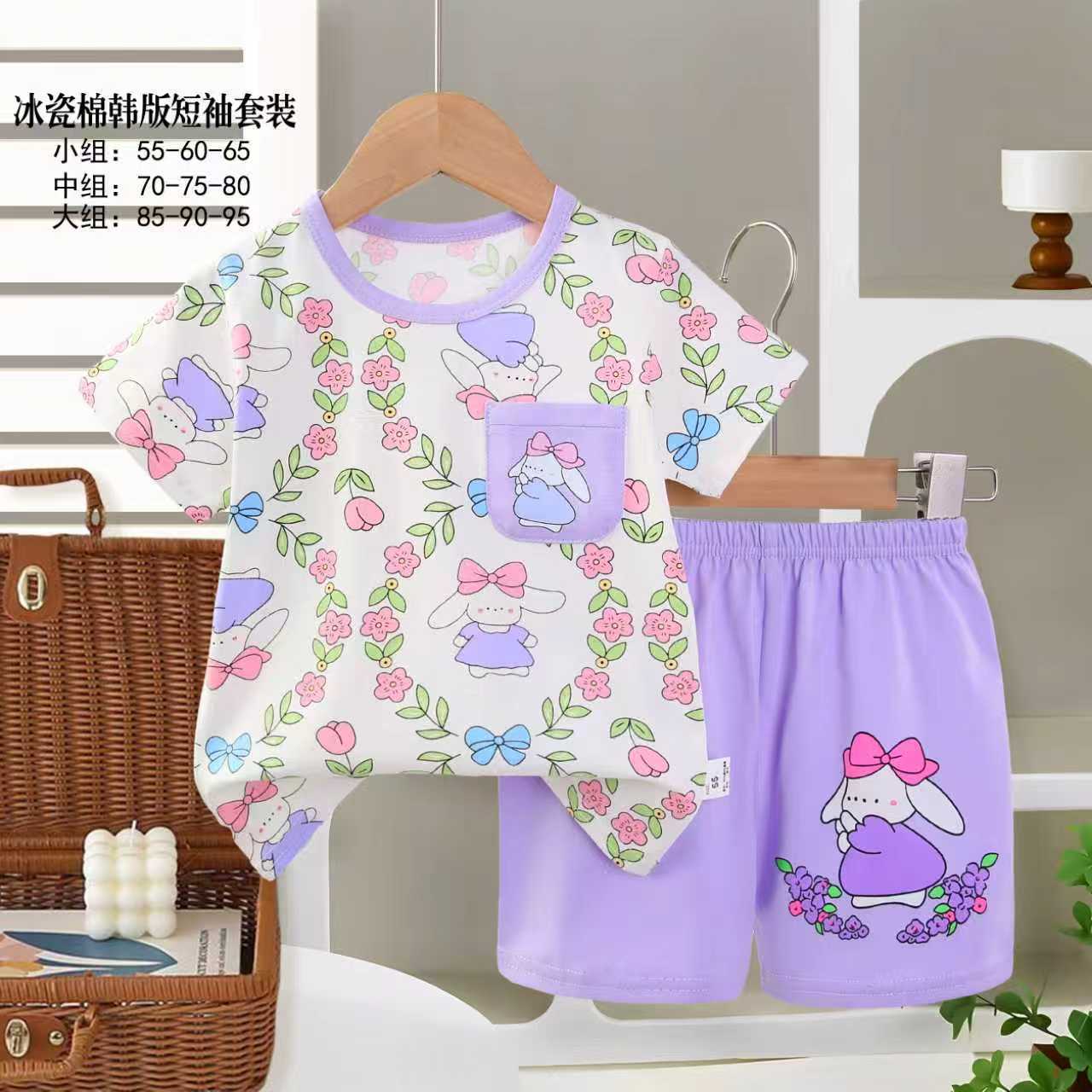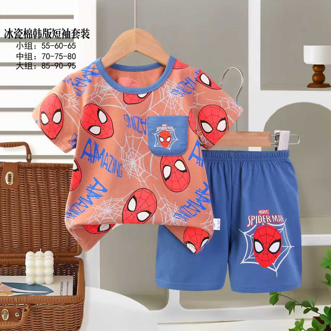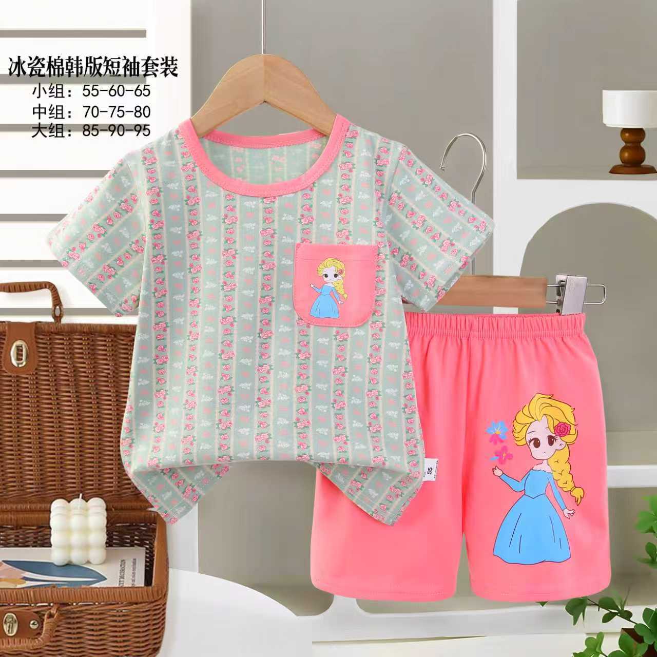 아동용 반팔세트, 여름 신상품, 순면 남아 잠옷, 여아 에어컨복, A급 여름옷, 아동복, 중소형 아동복