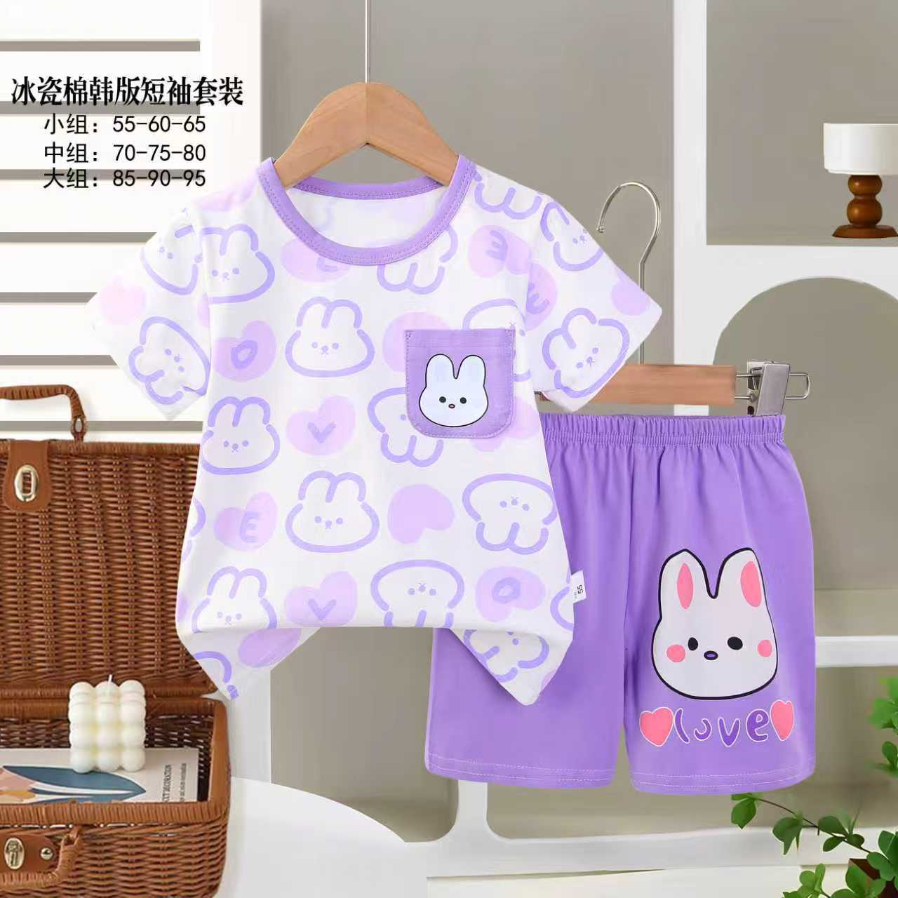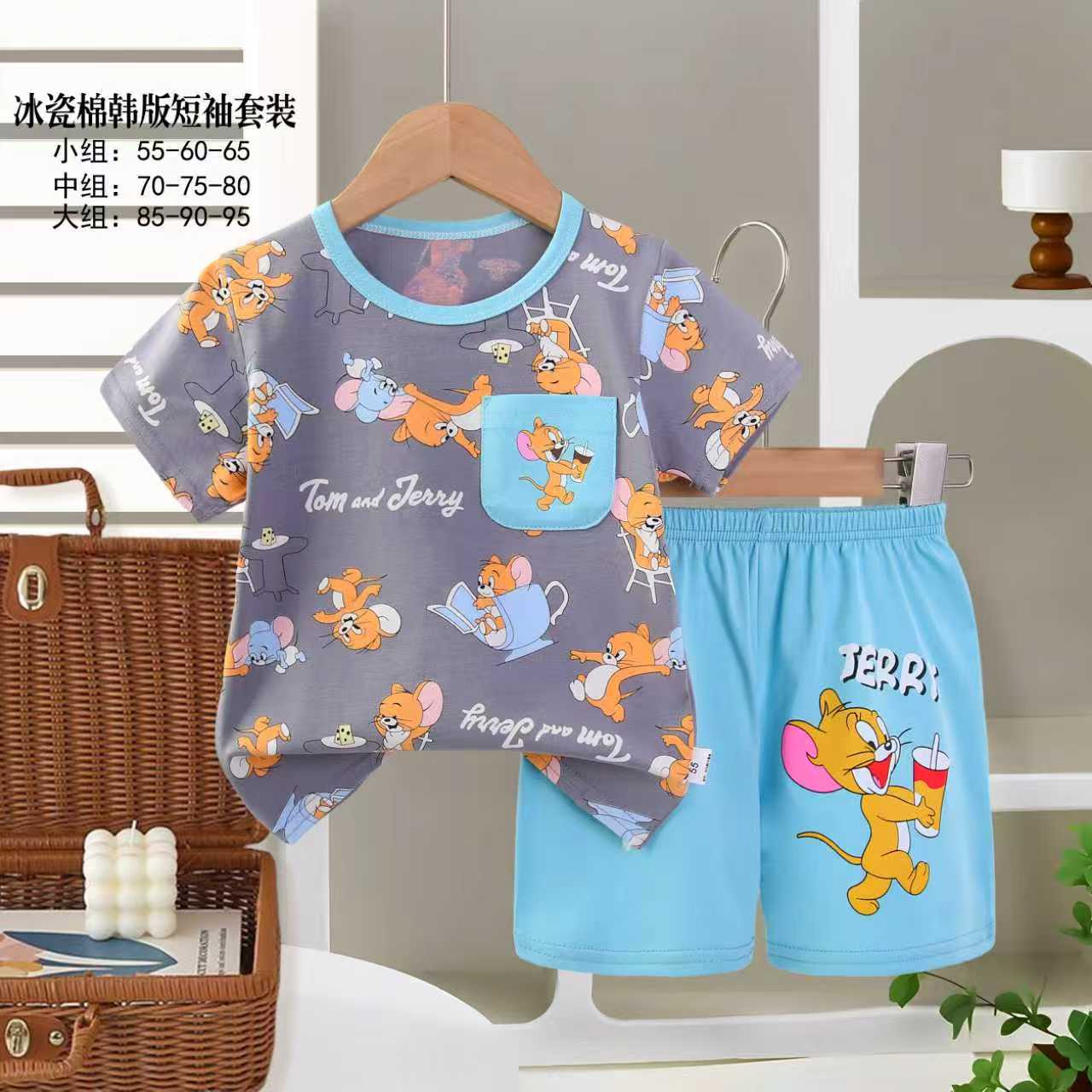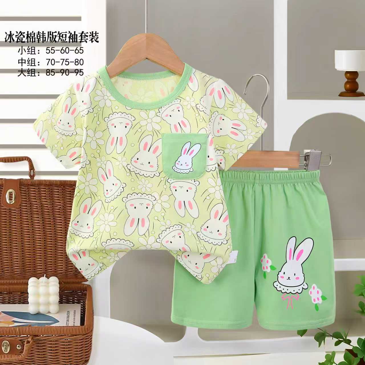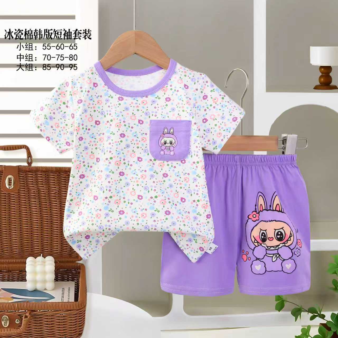 아동용 반팔세트, 여름 신상품, 순면 남아 잠옷, 여아 에어컨복, A급 여름옷, 아동복, 중소형 아동복