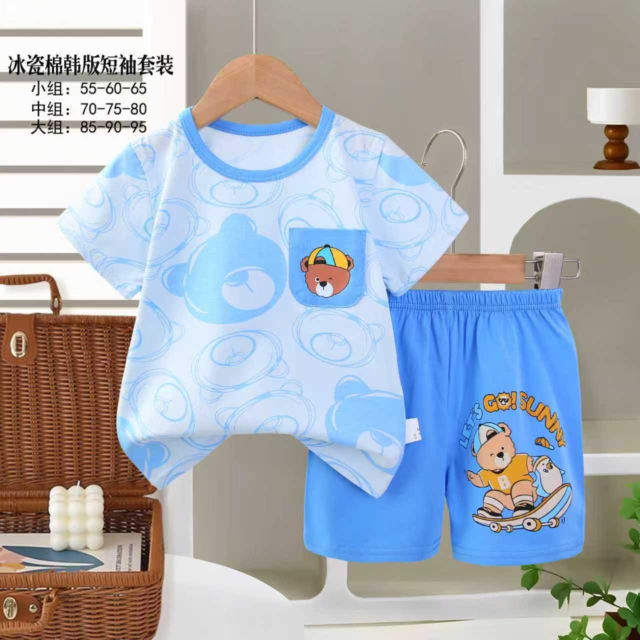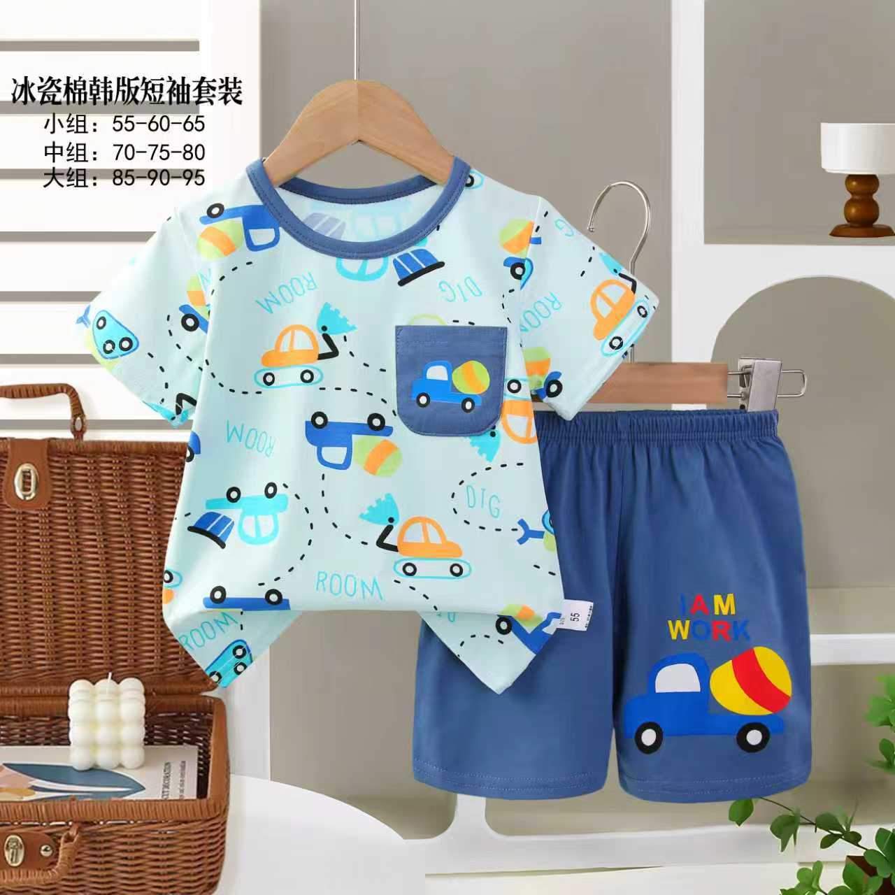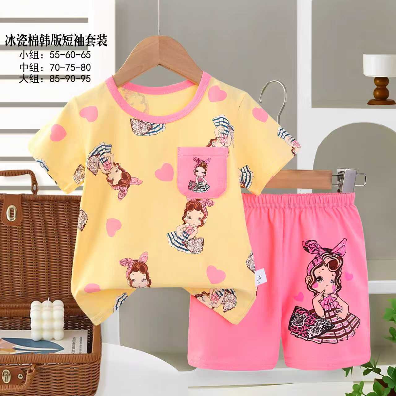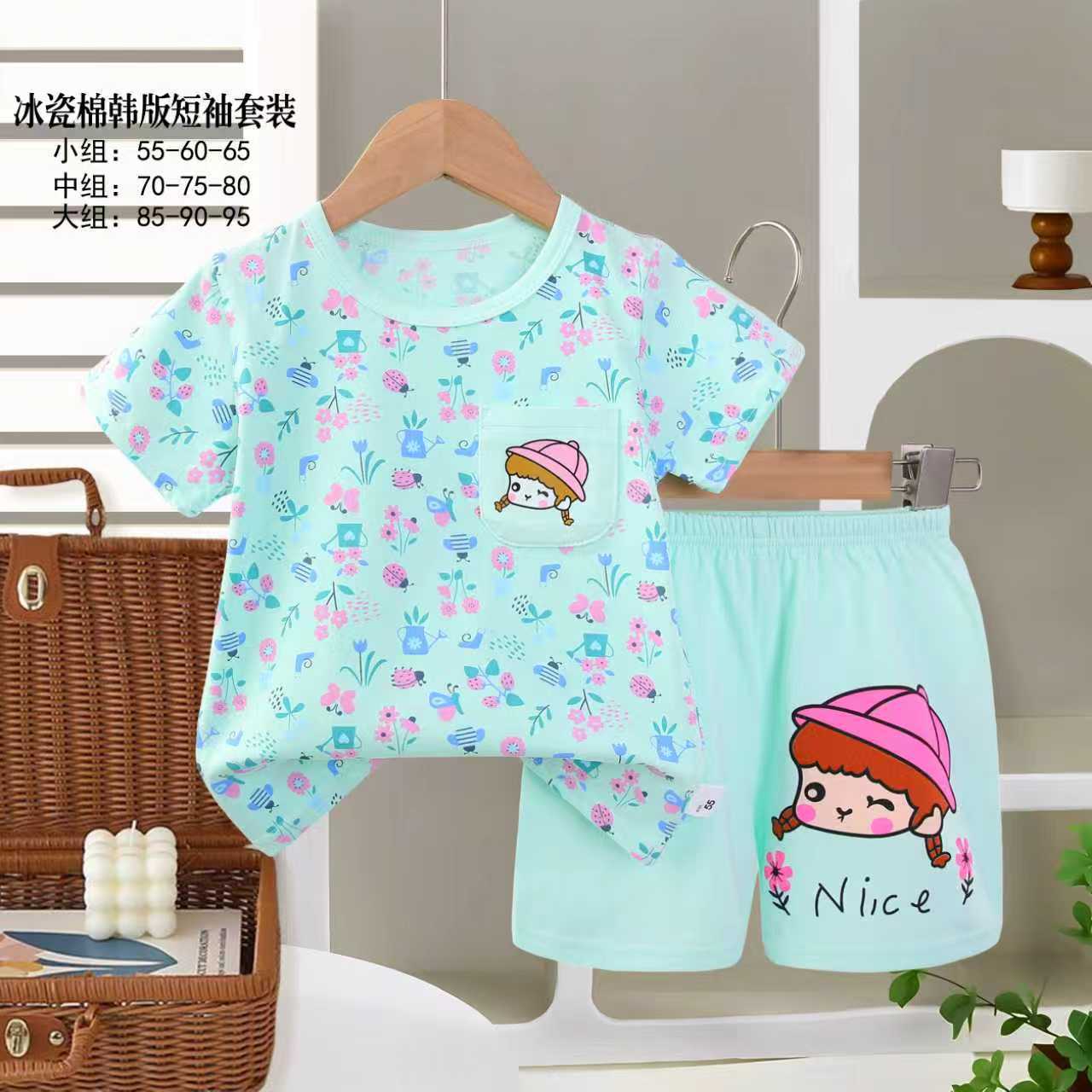아동용 반팔세트, 여름 신상품, 순면 남아 잠옷, 여아 에어컨복, A급 여름옷, 아동복, 중소형 아동복스토어 가기