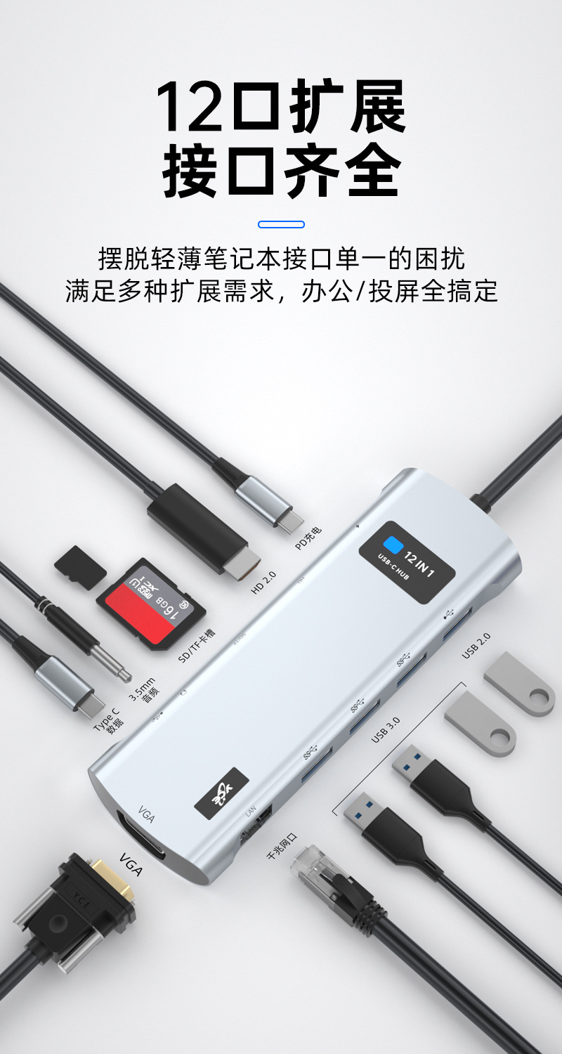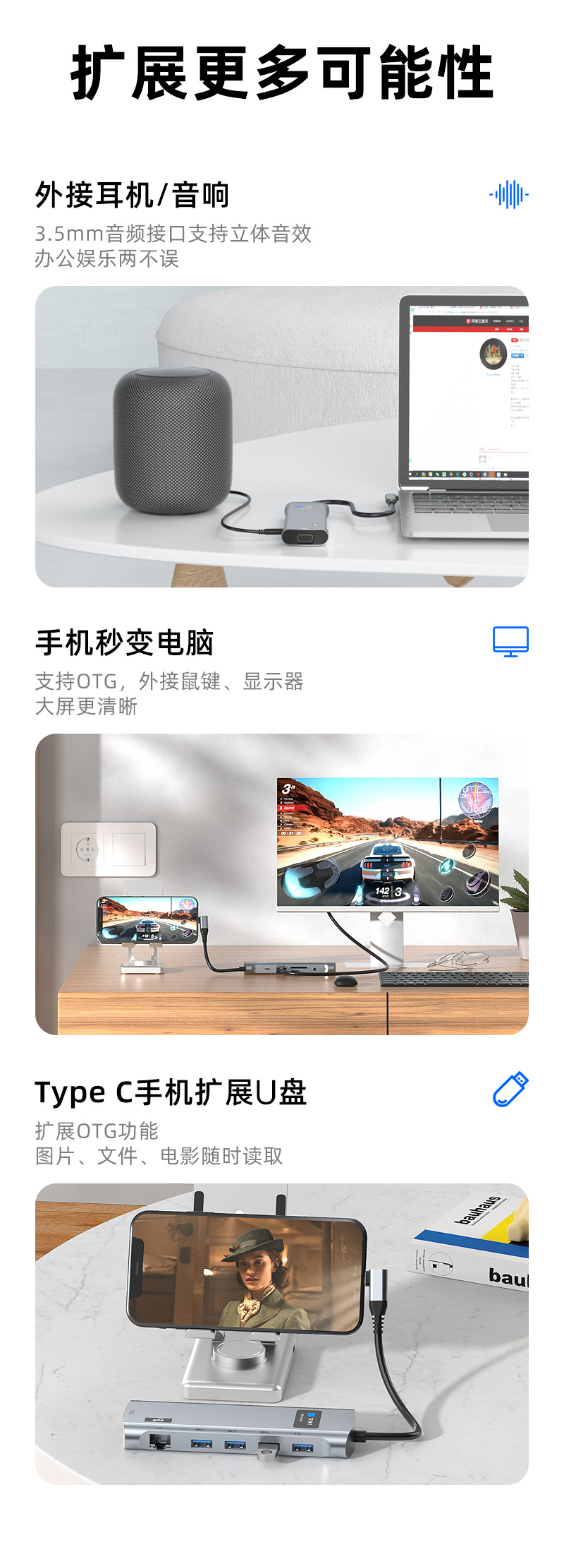 확장 Dock Typec 확장 USB 스플리터 전송 유형-C HUB 멀티 포트 도킹 도킹 오피스 장비스토어 가기