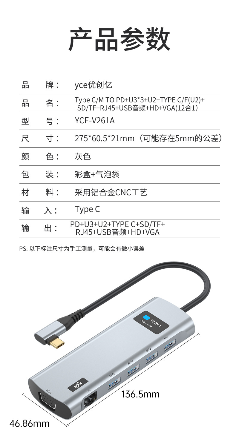 확장 Dock Typec 확장 USB 스플리터 전송 유형-C HUB 멀티 포트 도킹 도킹 오피스 장비