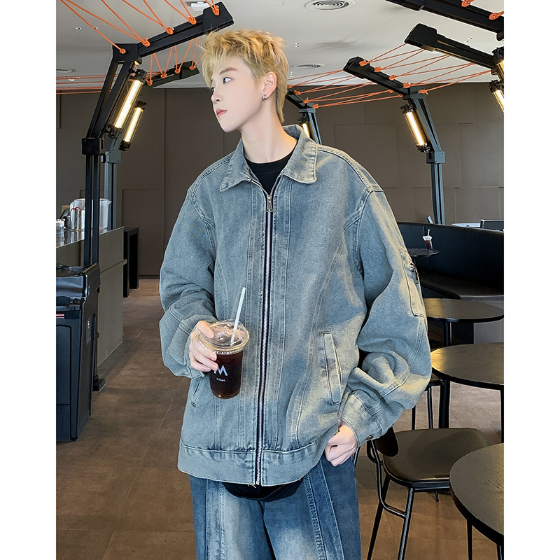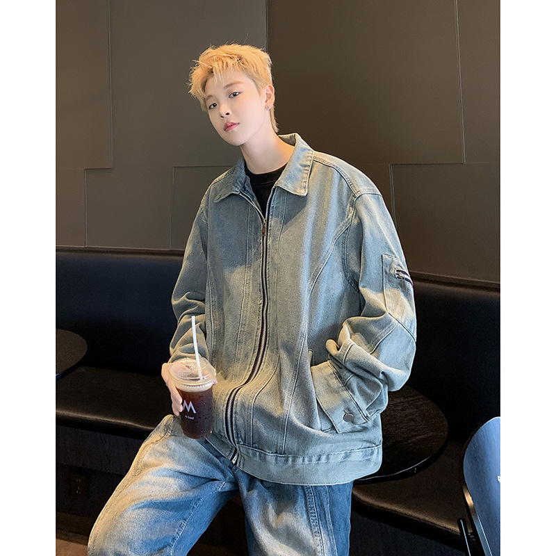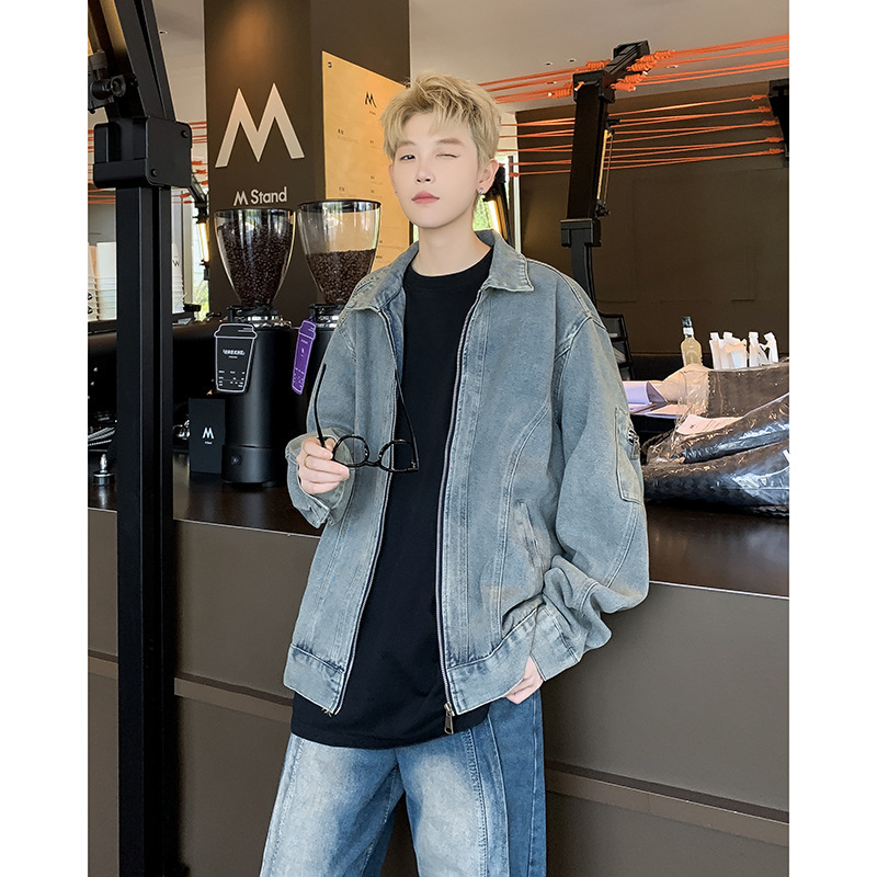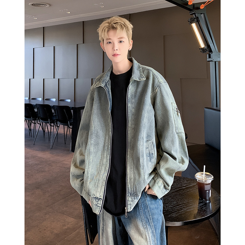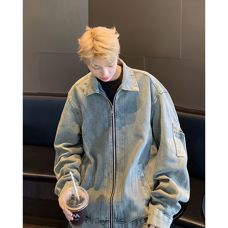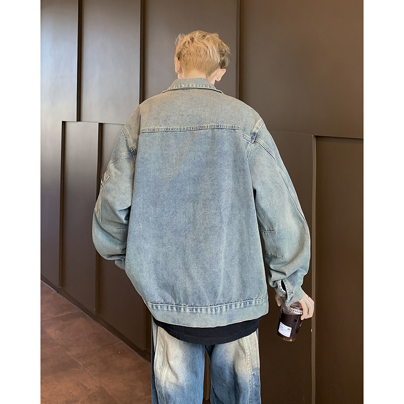 데님 코트 남성 가을 미국 스타일 레트로 하이 스트리트 의류 봄과 가을 유행 브랜드 루즈 세탁 중고 재킷스토어 가기