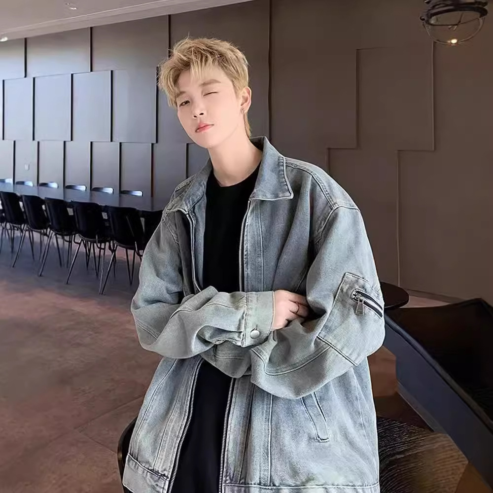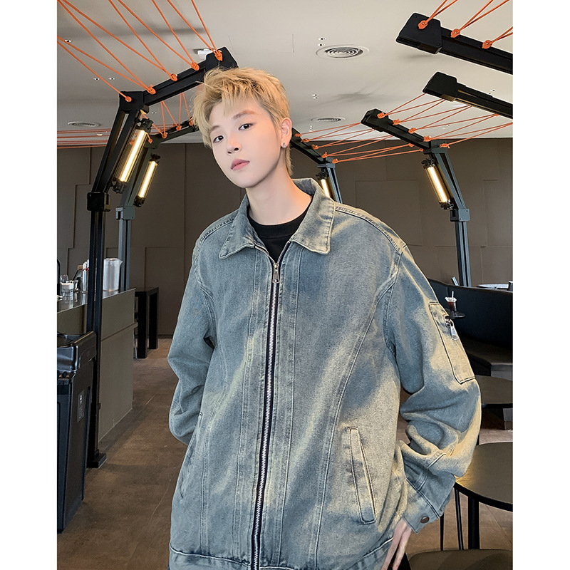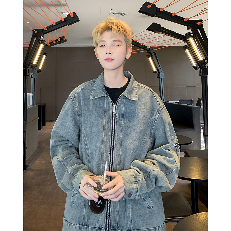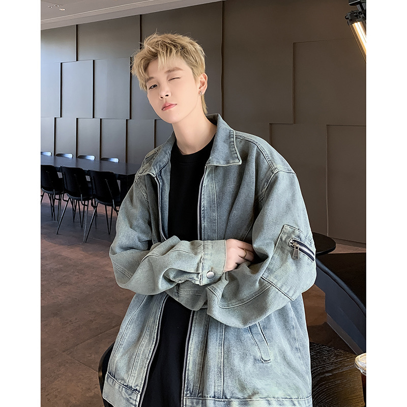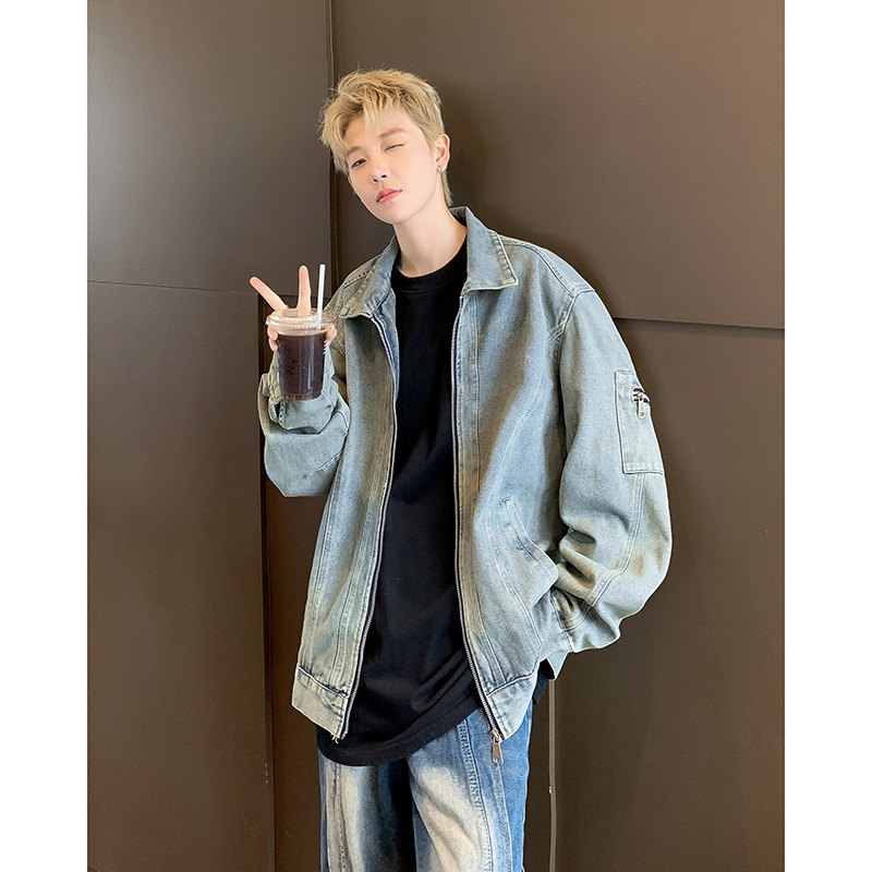 데님 코트 남성 가을 미국 스타일 레트로 하이 스트리트 의류 봄과 가을 유행 브랜드 루즈 세탁 중고 재킷스토어 가기