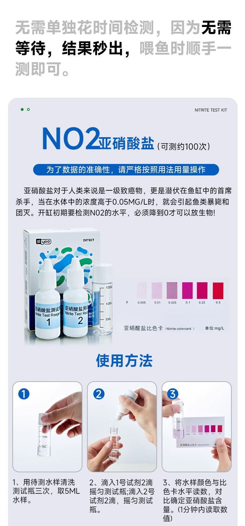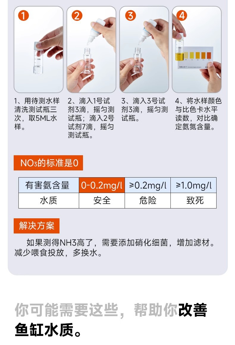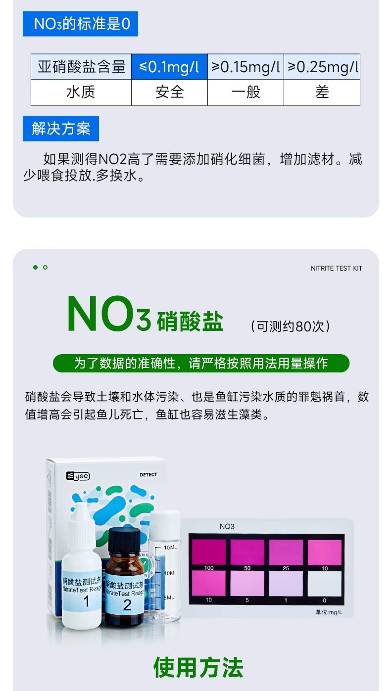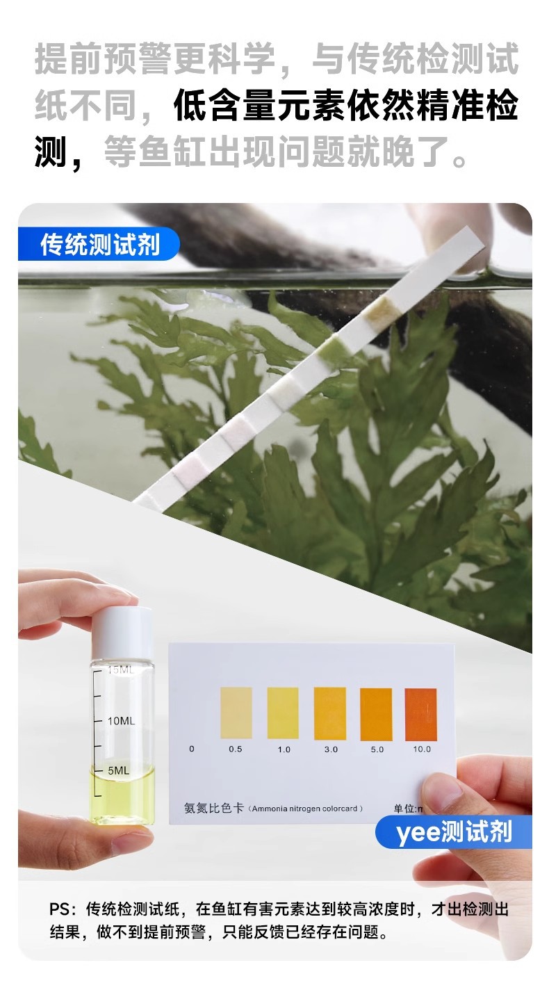 Yee 물고기 탱크 암모니아 질소 시험 종이 수족관 수질 검출 질산염 시험 시약 수분 경도 조정