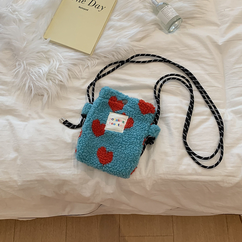 휴대 전화 가방 새해 새 봉제 줄무늬 귀여운 작은 가방 핑크 어깨 크로스 바디 가방 패션 올 매치 코인 지갑스토어 가기