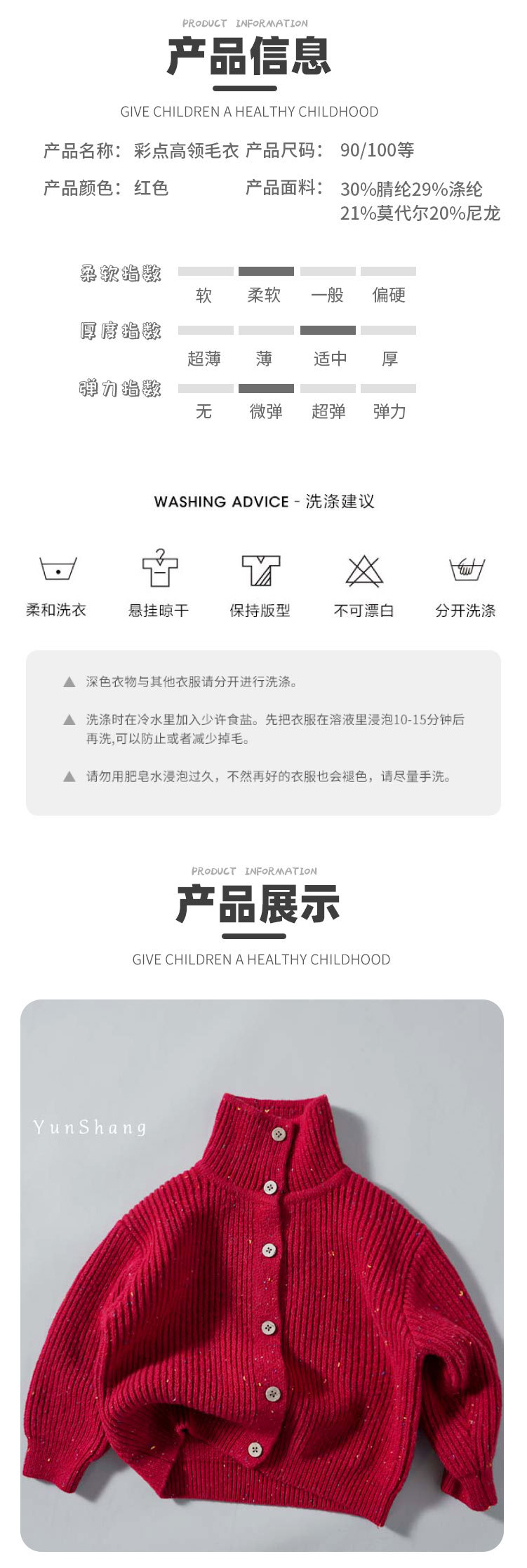 가을과 겨울 새로운 한국 스타일 소년 소녀 Chaobao 새해 크리스마스 스웨터 어린이 레드 하이 칼라 니트 컬러 도트 카디건스토어 가기