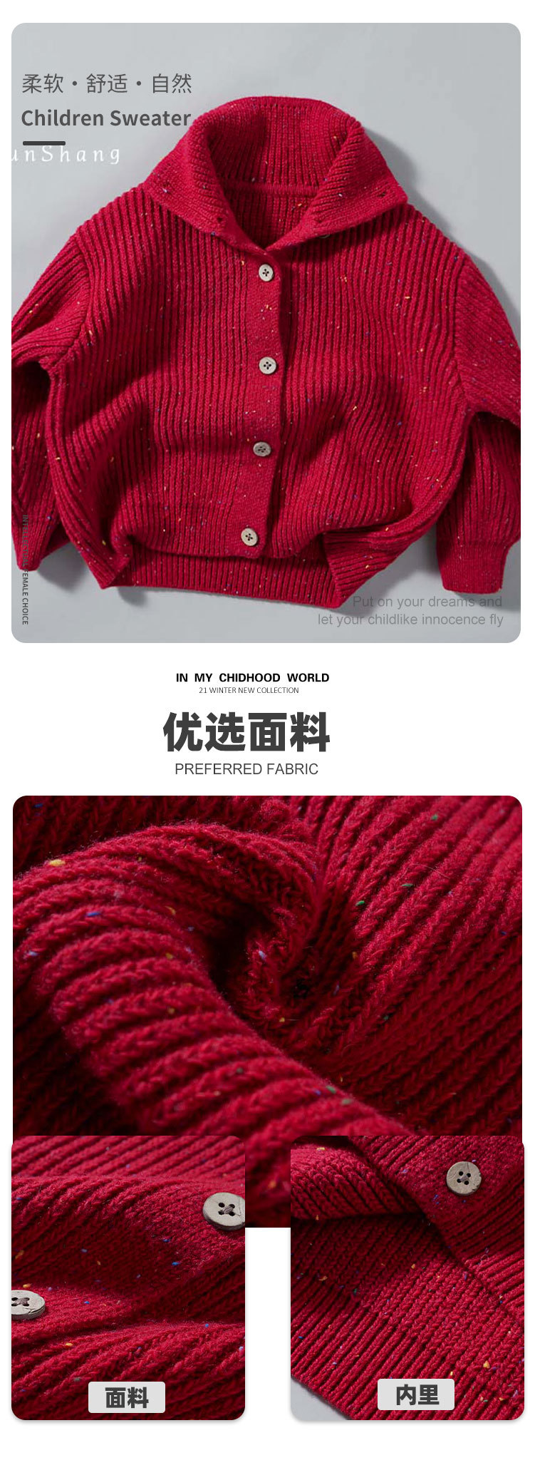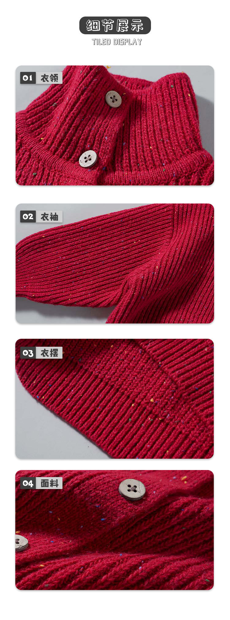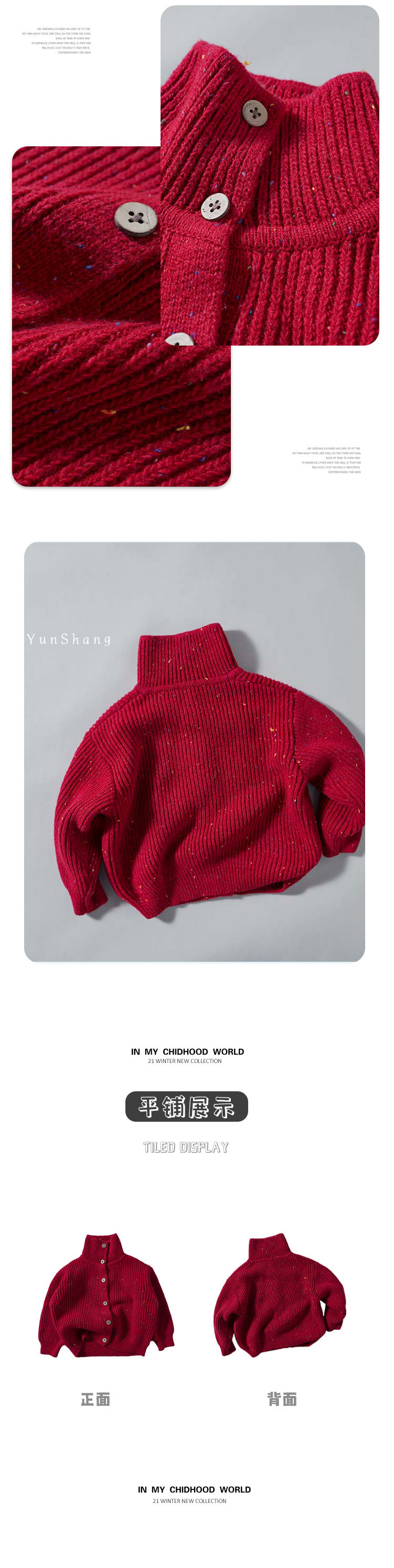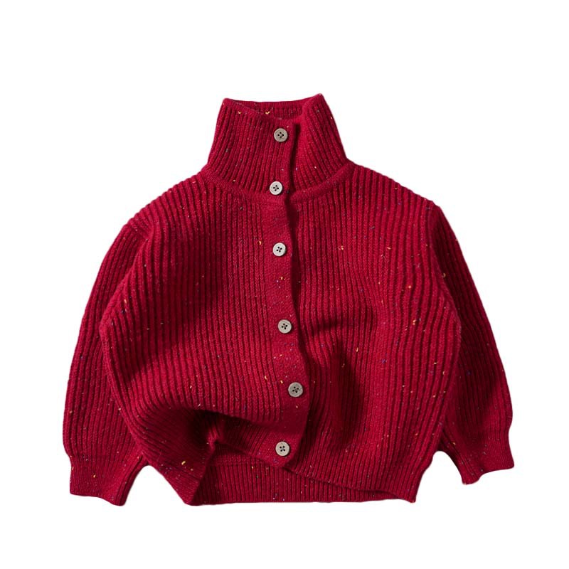 가을과 겨울 새로운 한국 스타일 소년 소녀 Chaobao 새해 크리스마스 스웨터 어린이 레드 하이 칼라 니트 컬러 도트 카디건