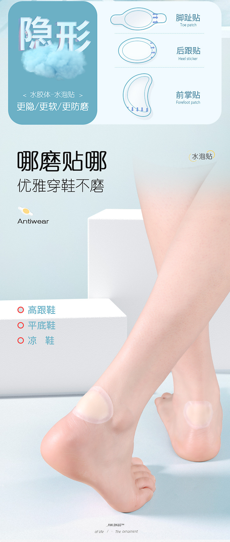 하이드로콜로이드 투명 발 연삭 패치 하이힐과 로퍼용 하이드로겔 마모 방지 발 뒤꿈치 패치로 물집을 수리하고 발을 보호합니다.스토어 가기