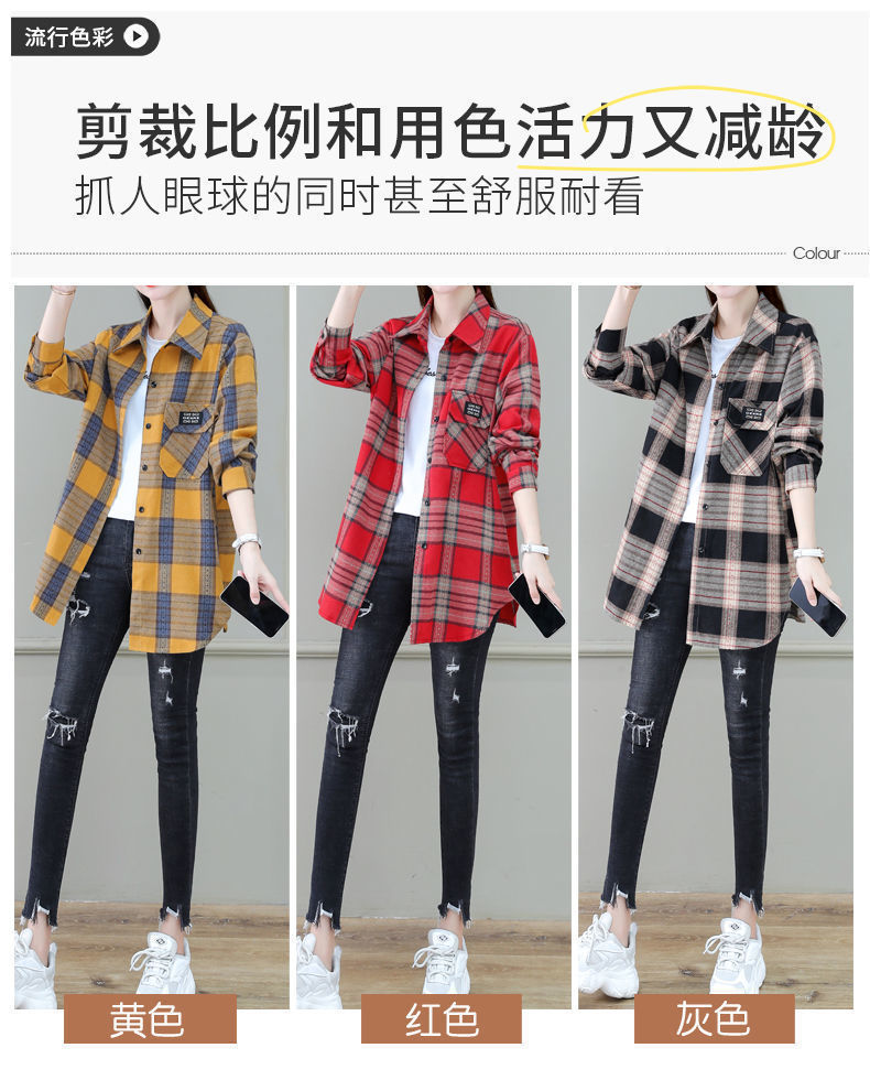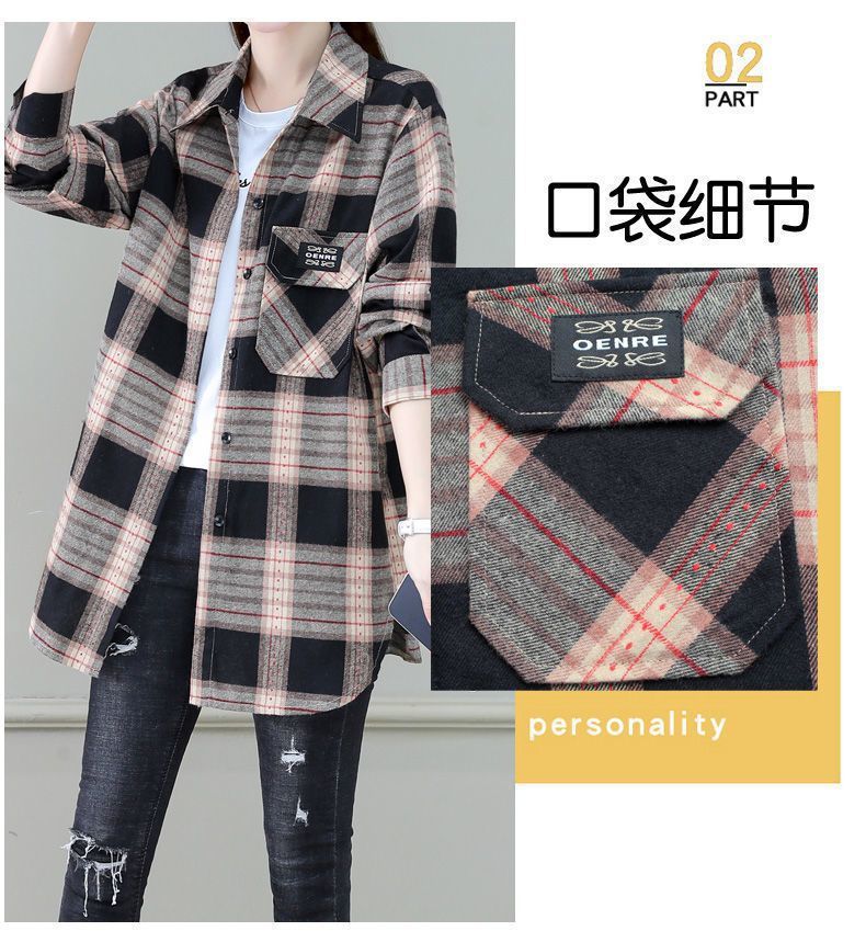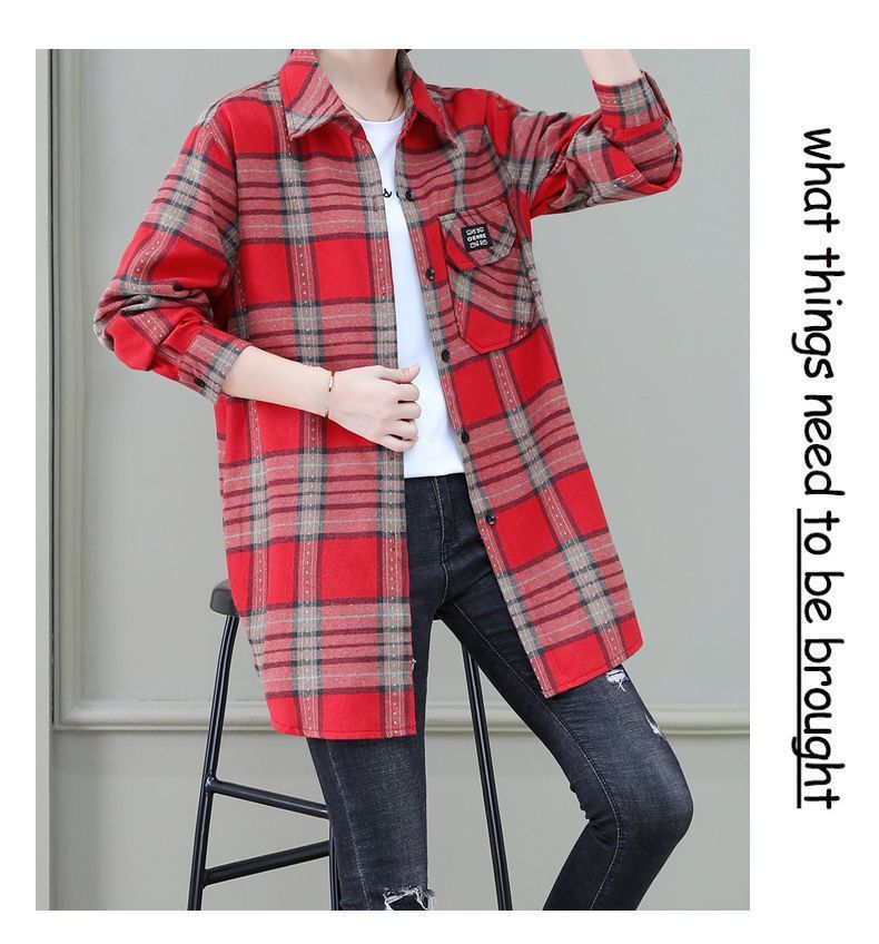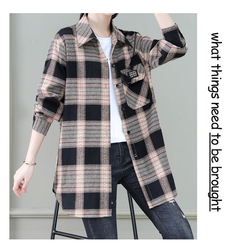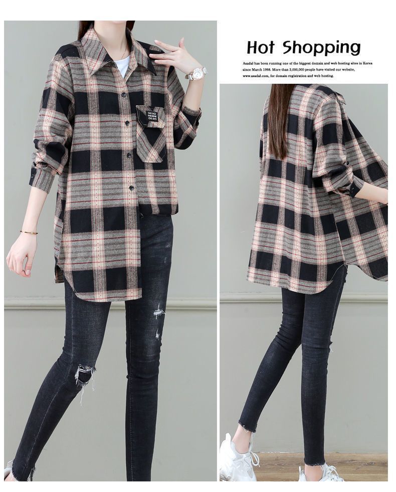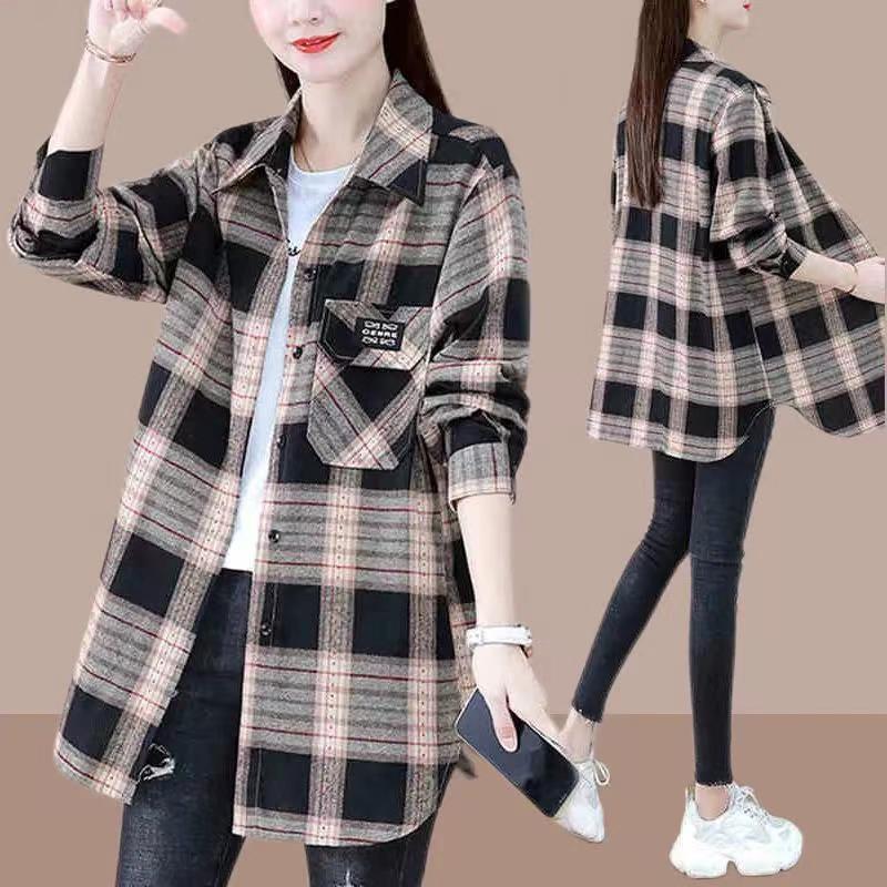 2023 봄과 가을 새로운 느슨한 슬리밍 중간 길이의 격자 무늬 셔츠 여성 서양식 연령 감소 코트 봄 올 매치 탑스토어 가기