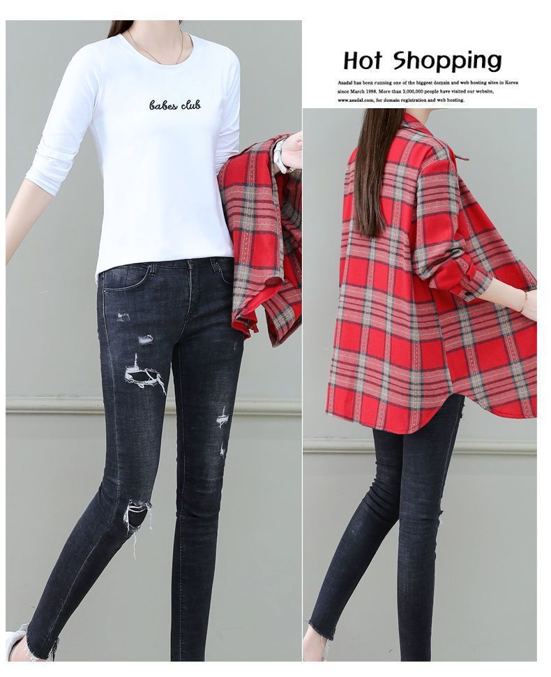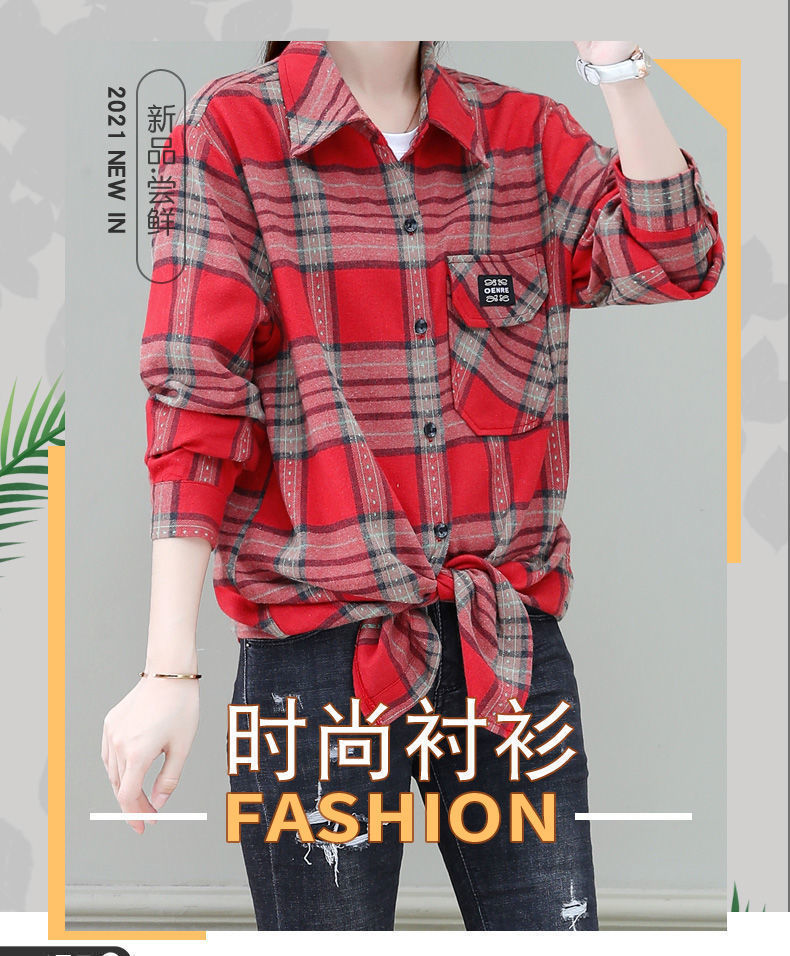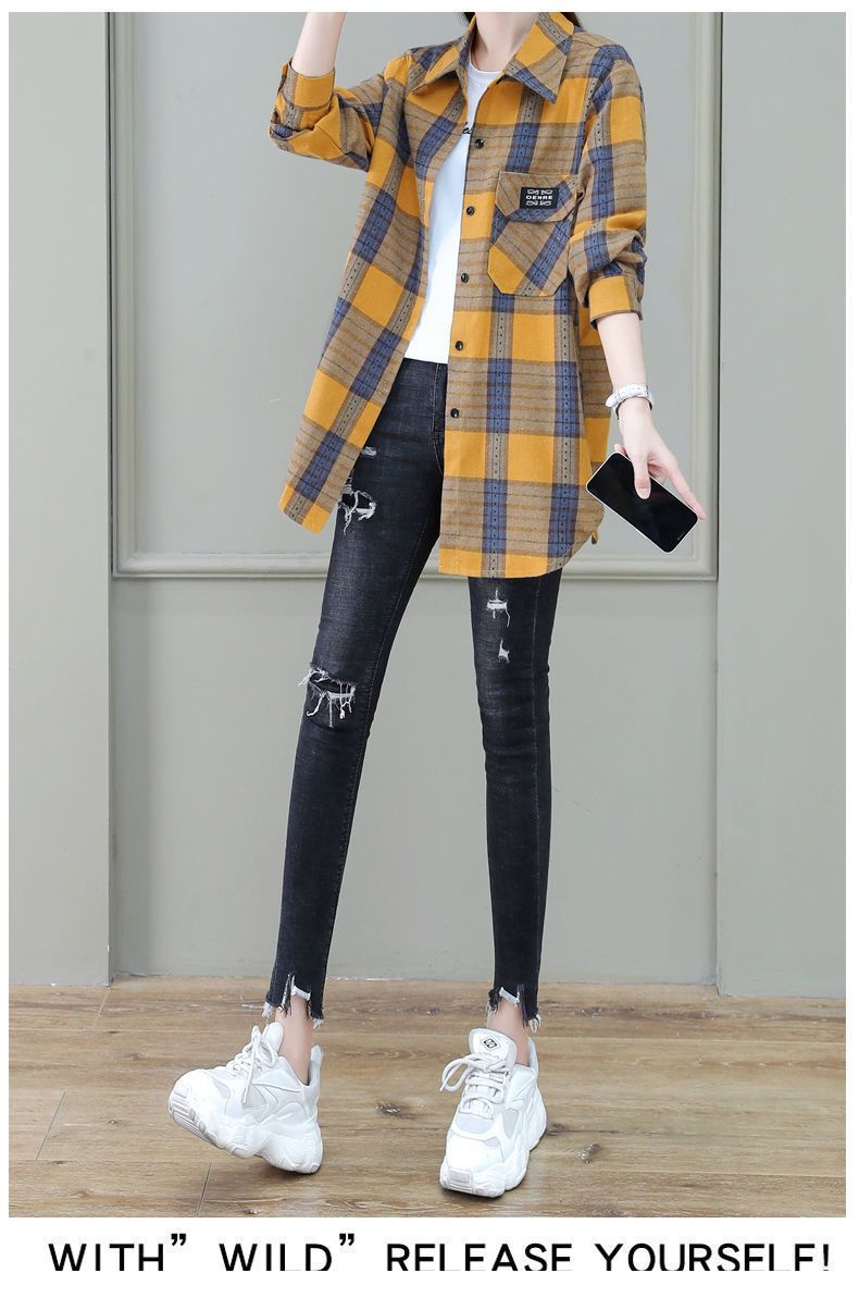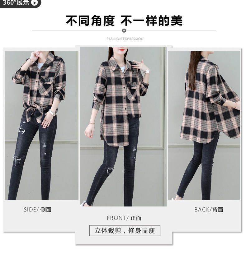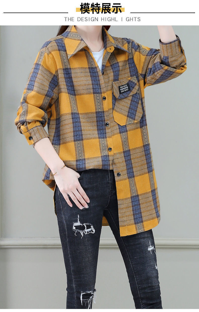 2023 봄과 가을 새로운 느슨한 슬리밍 중간 길이의 격자 무늬 셔츠 여성 서양식 연령 감소 코트 봄 올 매치 탑스토어 가기
