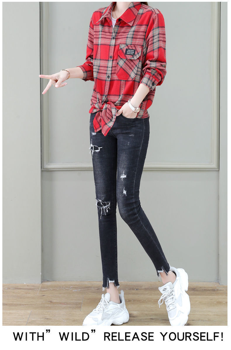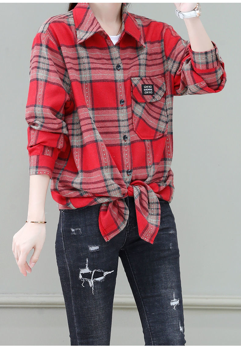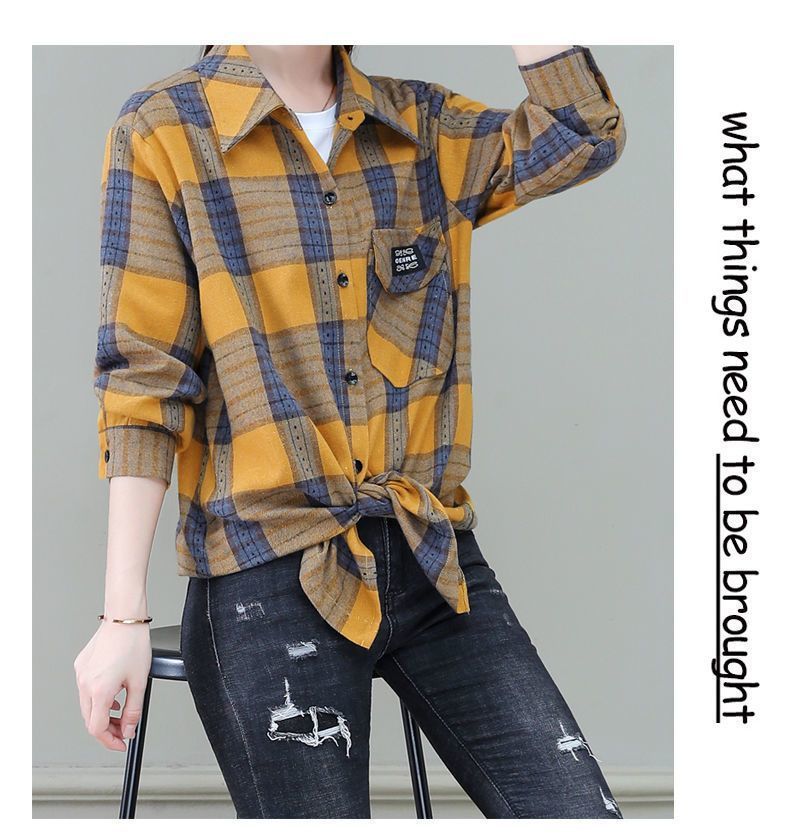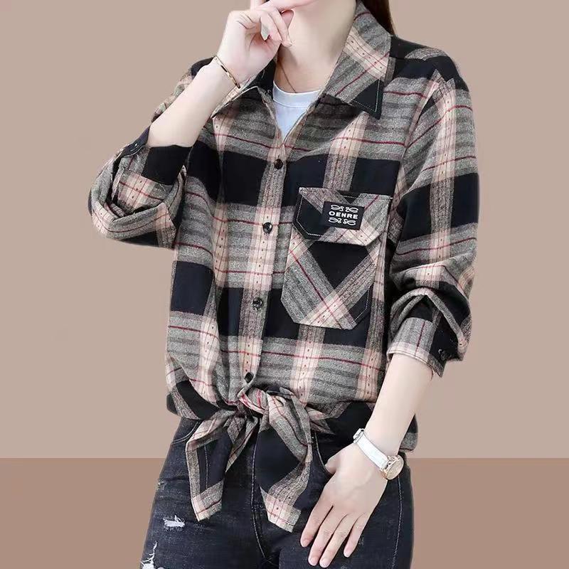 2023 봄과 가을 새로운 느슨한 슬리밍 중간 길이의 격자 무늬 셔츠 여성 서양식 연령 감소 코트 봄 올 매치 탑