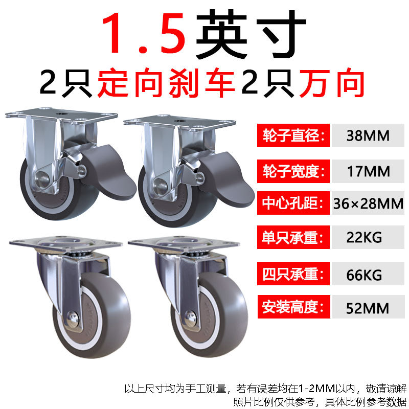 • 1.5inch (고정 브레이크 2개 + 고정 2개) 휠 직경 38MM