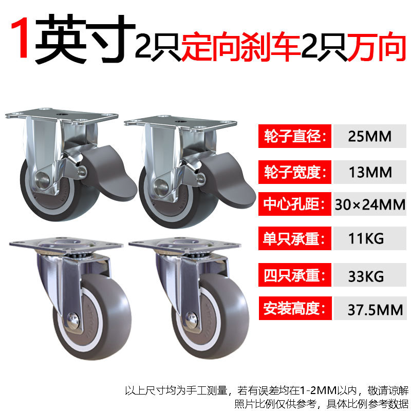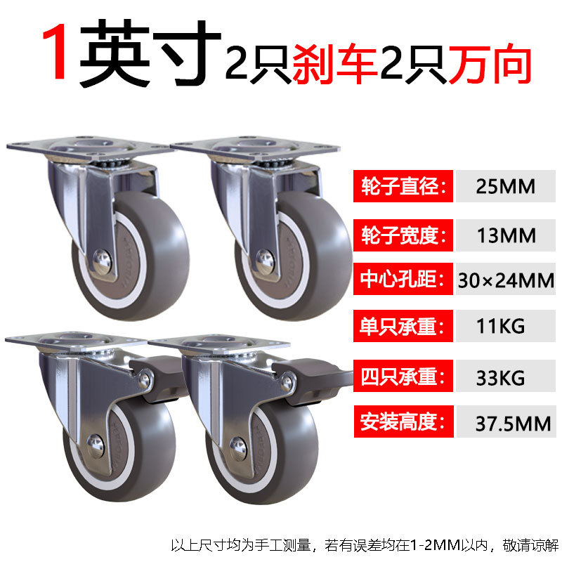 • 1inch (고정 브레이크 2개 + 고정 2개) 휠 직경 25MM